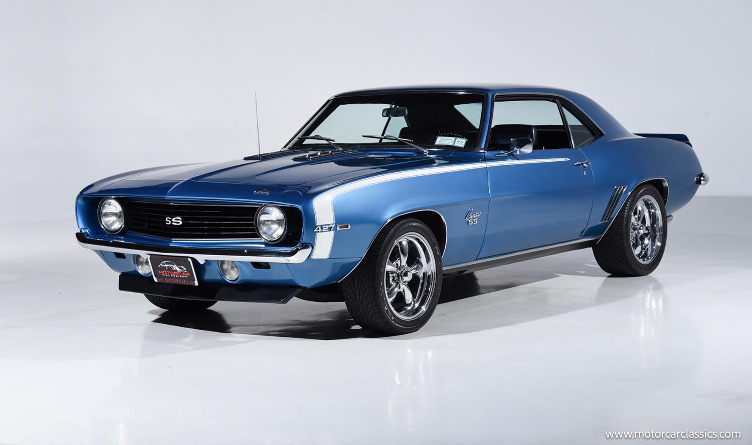 This 1969 Chevrolet Camaro SS Tribute features a rebuilt 427 V8, a four-speed manual, and quality upgrades that refine its muscle car personality. With modern comforts and meticulous upkeep, it delivers an authentic yet usable classic driving experience.