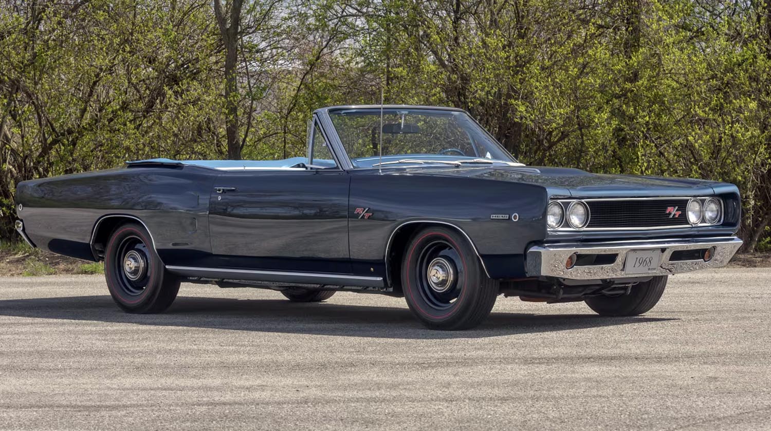 One of only 11 produced, this 1968 Dodge Hemi Coronet R/T Convertible features a 426/425 HP Hemi V-8 and a $300,000 rotisserie restoration, making it a pinnacle of Mopar collecting.