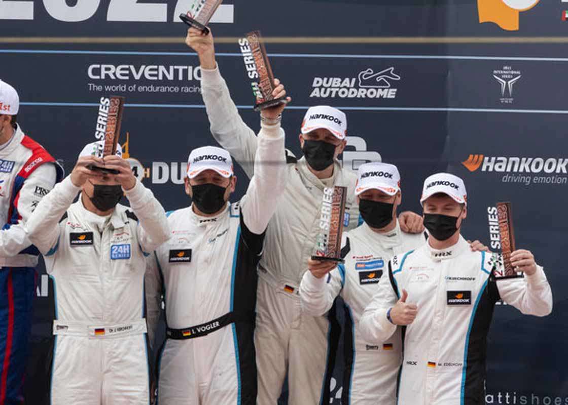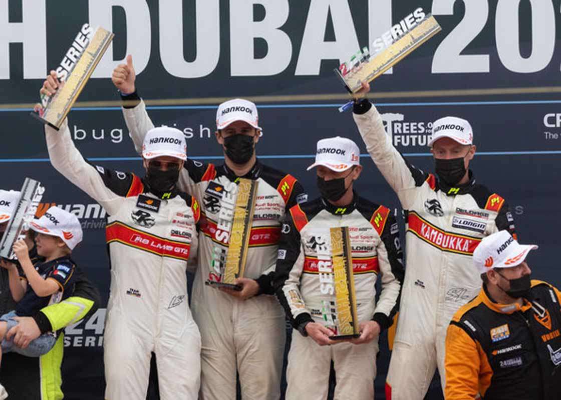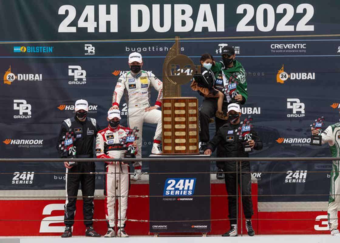 The GT3 version of the Audi R8 LMS not only scored successes in the overall standings. The number 34 car from Car Collection Motorsport still recorded third place in the Am classification although contact with an opponent had necessitated the replacement of a track rod on the rear axle. The Gentlemen drivers Gustav Edelhoff/Elmar Grimm/Dr. Johannes Kirchhoff/Ingo Vogler, loyal customers of Peter Schmidt’s team and the Audi brand for many years, shared the cockpit with youngster Max Edelhoff. The podium success also meant a particularly emotional farewell: For Gustav Edelhoff – who was already an Audi customer in rallying in the 1980s – it was the last 24-hour race in Dubai. Saintéloc Racing finished sixth in the Am classification, a second R8 LMS from Car Collection Motorsport eighth.