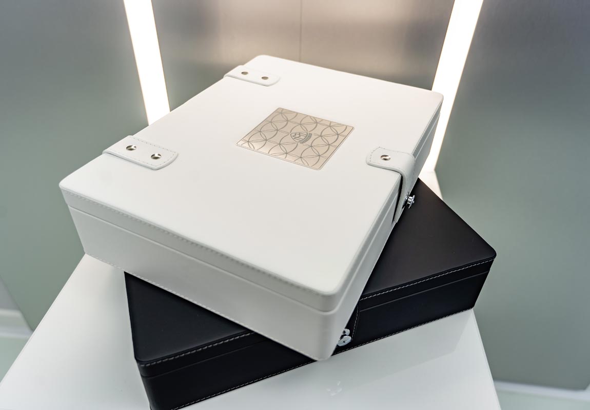 A car cover with the iconic double M as well as a fine handmade case made of soft crystal white or black leather in file size – made to store keys and papers – further underline the exclusivity of the edition. In keeping with the anniversary edition, Mercedes-Maybach’s long-standing partners are also designing strictly limited special series: Licensing partner Maybach Icons of Luxury, for example, offers a diamond-studded fountain pen from the Maybach the Peak collection; the silver and yacht manufacturer Robbe & Berking offers a champagne flute with a specially created engraving.
