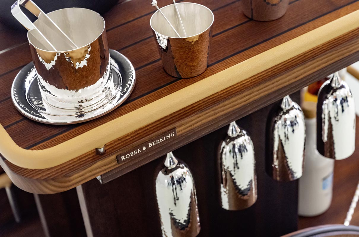 Since 2008, the traditional company has also been building and restoring wood sailing yachts at its own shipyard, Robbe & Berking Classics. The longing for travel and beauty unites: “The large and small masterpieces of both companies are among the best of their kind in the world. In both manufactories, unique works of timeless elegance are produced from selected materials. In a perfection that arouses emotions not only among collectors and customers all over the world,” says Oliver Berking, Managing Director of Robbe & Berking Silbermanufaktur seit 1874 GmbH & Co KG.