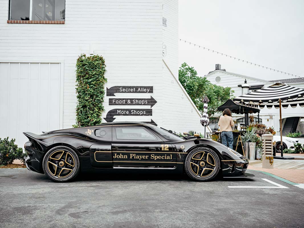 The paintwork on the JPS cars is another area worthy of mention. An exquisitely conceptualised and constructed finish has resulted from many hours of formulation and research. The result on this show car is a beautiful layer of bespoke gold paint which playfully glints through the 10 layers of rich, dark Candy Black. In certain lights and at certain angles, the paint provides a subtle nod to the original JPS colour scheme, but with a modern and exciting twist. The show car wears a gold pinstripe meticulously hand-painted underneath the clearcoat on owner cars.