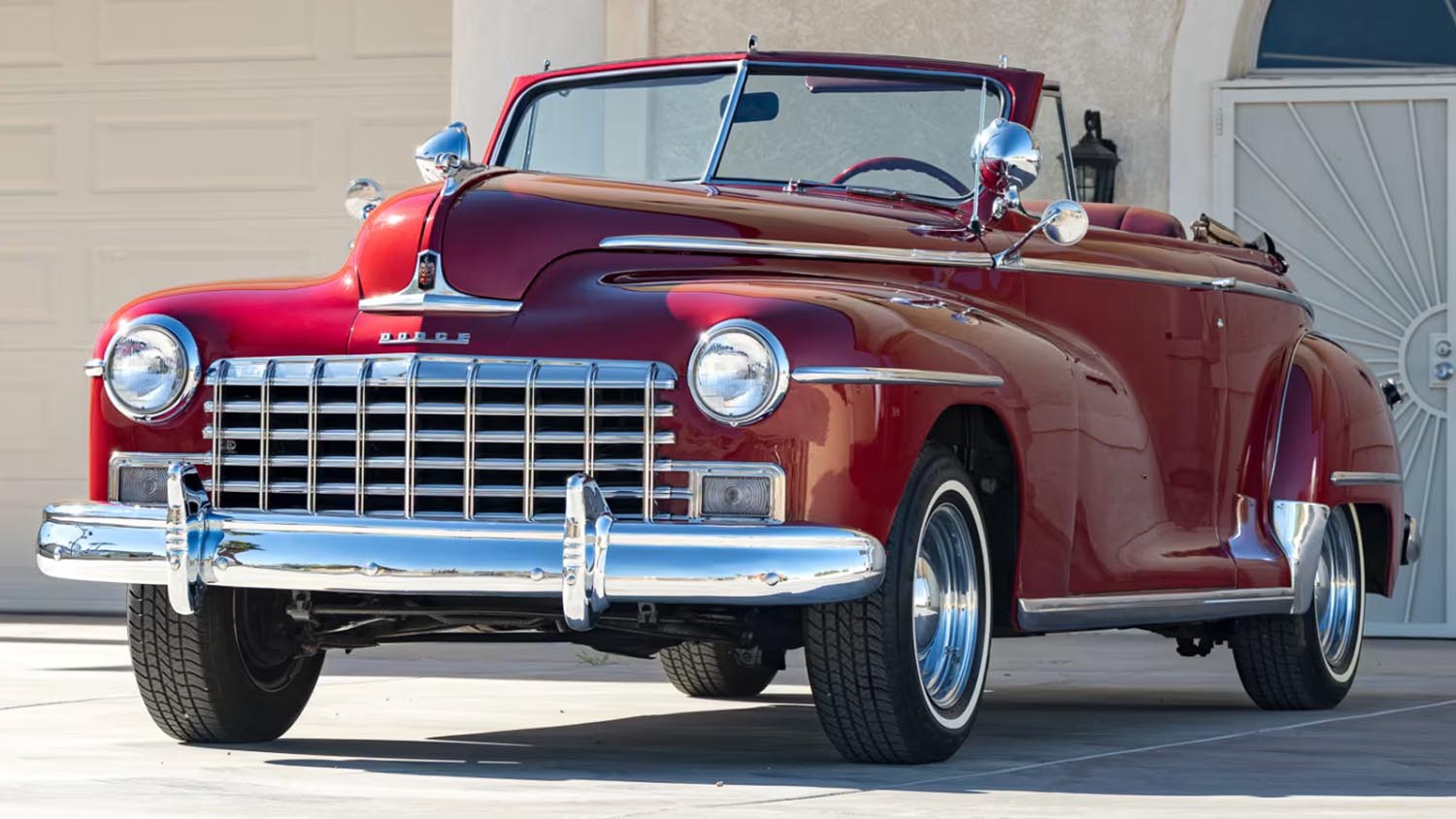 The 1946 Dodge D-24 Custom Convertible stands as a beautifully restored example of American resilience and design. Its Burgundy on Burgundy color scheme is both rare and visually arresting, making it a standout for the Glendale auction. By maintaining the original Fluid Drive setup, the car offers a genuine period-correct feel for the next owner. The recent mechanical updates ensure that it is not just a museum piece, but a functional vehicle. It represents an era where cars were built with a level of physical substance that is rarely seen today. This Dodge is a perfect entry point for those seeking a stylish and historically significant convertible with character.