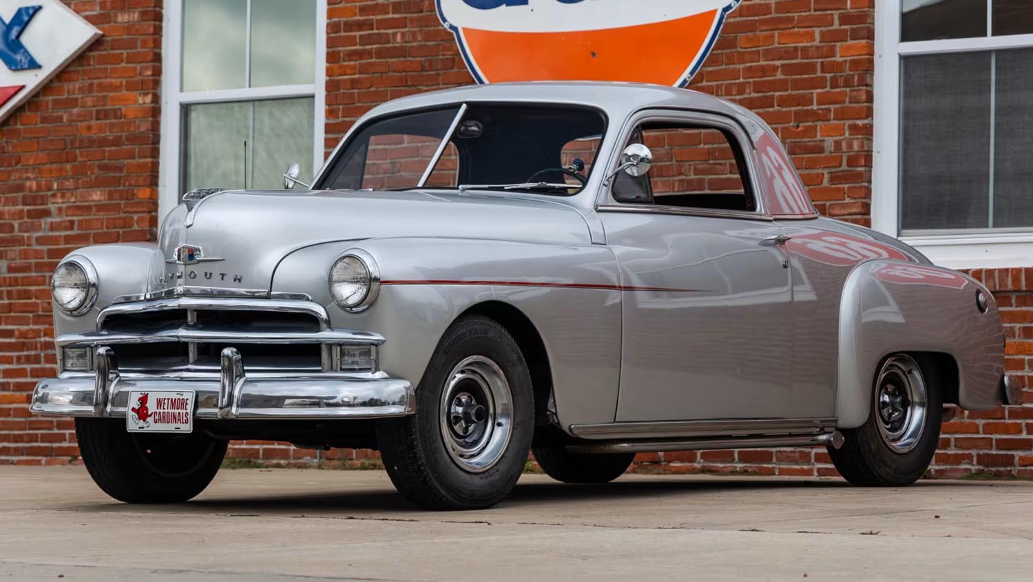 The 1950 Plymouth Deluxe Coupe arrives at auction with its silver finish and red interior, a striking combination that highlights the focus keyphrase 1950 Plymouth Deluxe Coupe. This Kansas City spotlight offers a glimpse into mid-century design and engineering.