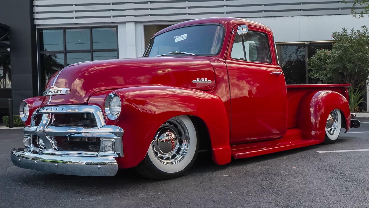 The 1954 Chevrolet 3100 5-Window represents the final and most refined year of the legendary Advance Design series. Collectors highly prize the five-window cab configuration for its superior visibility and iconic wraparound rear glass. This specific custom pickup, Lot J251.1 at Kissimmee 2026, pushes those classic boundaries with a comprehensive modern rebuild. It successfully marries the curved, post-war sheet metal with contemporary LS power and a sophisticated air-ride chassis. Every inch of the truck has been massaged, from the frenched headlights to the intricate custom pinstriping. Consequently, it stands as a premier example of the restomod movement, where history meets modern driveability. The bright red exterior ensures it will be a focal point when it crosses the block on Friday, January 9th. It is a vehicle built for the enthusiast who wants the aesthetic of the fifties without the mechanical limitations of the past.