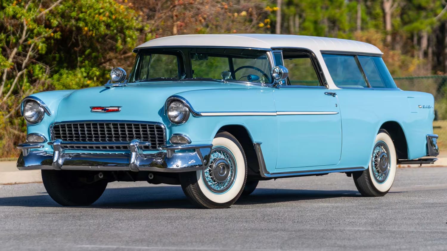 The 1955 Chevrolet Nomad Wagon presented at Kissimmee 2026 combines factory restoration with rare options. Its Cashmere Blue and India Ivory finish, Power Pack V-8, and authentic interior create a balanced showcase of design and performance. This wagon stands as a carefully prepared auction entry with enduring appeal.