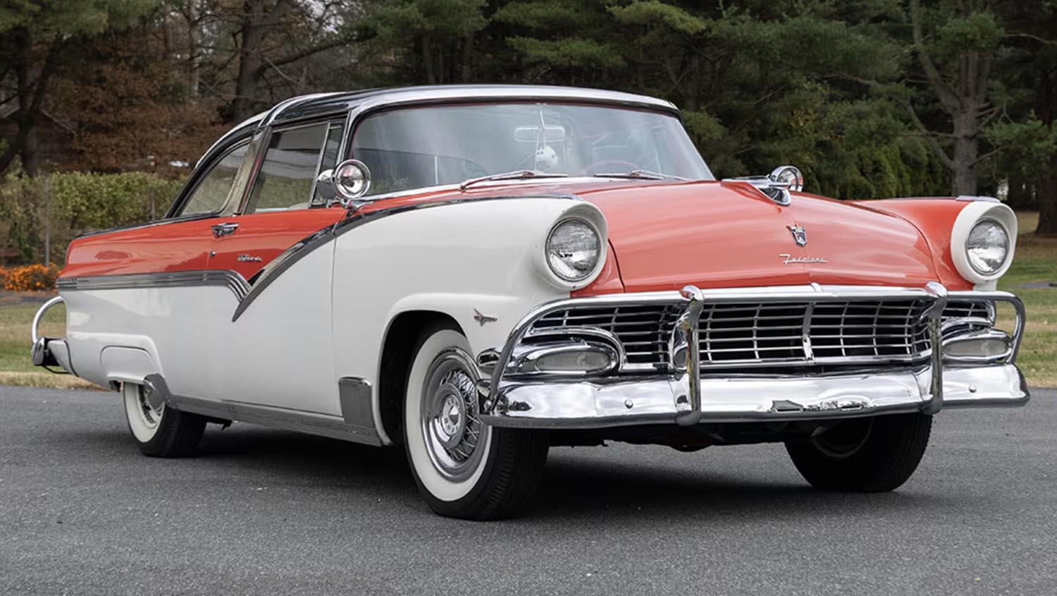 The 1956 Ford Crown Victoria Skyliner represents a true high-point of 1950s American automotive design. Its presence on the auction block offers a rare opportunity for collectors. The transparent roof Skyliner was the ultimate expression of Ford’s commitment to style and luxury in the Fairlane lineup. This particular example, finished in a distinctive Coral and Cream color scheme, embodies the exuberance of the era.