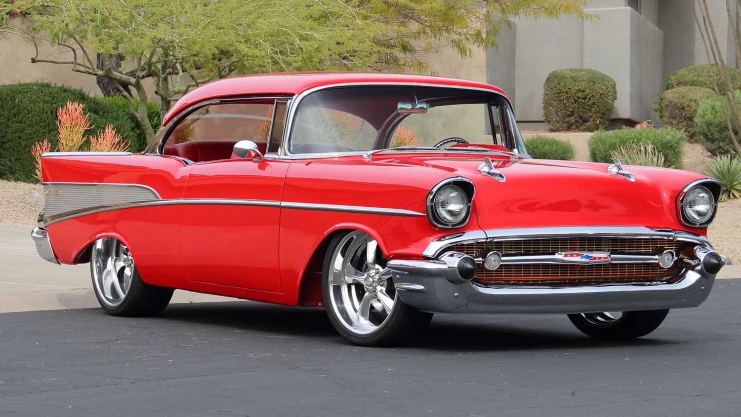 The 1957 Chevrolet Bel Air Custom Hardtop remains a definitive symbol of American automotive culture, but this specific build takes that legacy into the modern era. Scheduled to cross the block at the Glendale 2026 auction on Saturday, March 21st, it represents a complete reimagining of a classic. Clad in striking Corvette Red, the vehicle hides a sophisticated performance foundation beneath its iconic chrome-laden exterior.