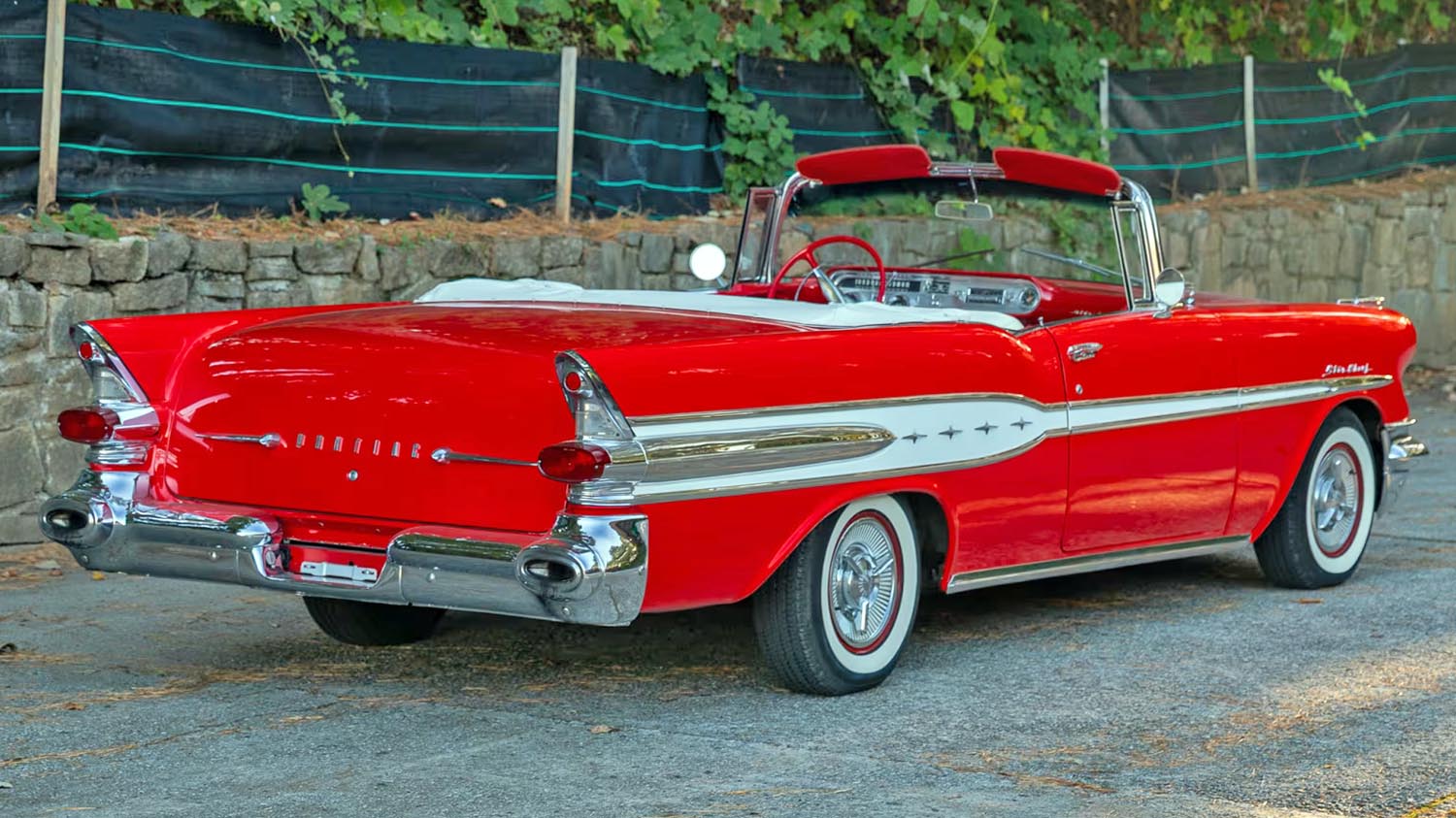 The 1957 Pontiac Star Chief Convertible blends a powerful 347 CI V-8, classic Red exterior, and refined interior features. Its documented originality and elegant design make it a standout collectible.