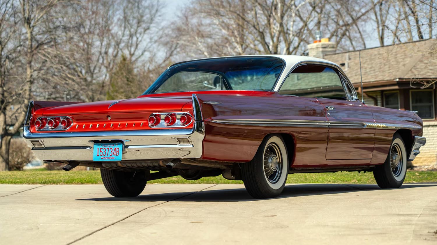 In today’s collector market, the 1961 Pontiac Bonneville is highly prized for its transitional styling, bridging the gap between the flamboyant fifties and the muscle car era of the mid-sixties. While the GTO often steals the spotlight, the Bonneville offers a much higher level of luxury and sophistication, making it a favorite for long-distance touring. The presence of factory 8-lug wheels and the Coronado Red color combination significantly enhances its desirability among marque purists. Compared to full-sized offerings from Oldsmobile or Buick, the Pontiac’s emphasis on “Wide-Track” performance provides a unique selling point that continues to drive appreciation for well-preserved hardtop models.