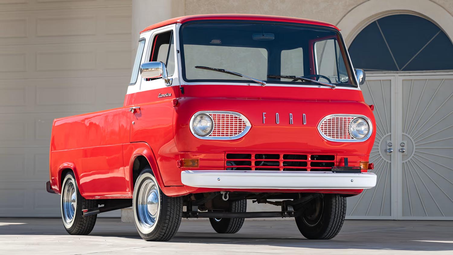 The 1964 Ford Econoline Pickup stands out as a unique chapter in American light-duty truck history. This specific example captures the essence of the mid-sixties with its bold forward-control cab design. Finished in a bright red with classic white trim, it offers an eye-catching aesthetic for any collection. It represents a time when Ford prioritized maneuverability and cargo efficiency in a compact footprint. This pickup features the traditional flat nose that helped define the early Econoline series. It remains a conversation piece due to its engine placement between the front seats. Enthusiasts will see this vehicle cross the block at the Kissimmee 2026 auction this January.
