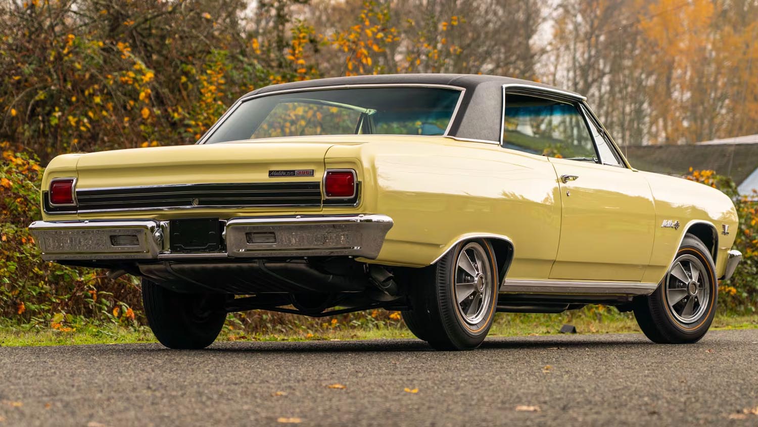 The exterior of this 1965 Chevrolet Chevelle Z16 is finished in one of only three colors offered for the model. Its Crocus Yellow paint provides a striking contrast against the optional black vinyl top, which was a rare available extra. A unique rear tail light panel trim immediately identifies the Z16 to those in the know. Mag-style wheel covers and Goldline tires complete the aggressive yet sophisticated look of the era. To handle the increased power, Chevrolet equipped these cars with larger brakes and a beefier chassis compared to standard models. Every body panel reflects the high standards of a vehicle that was essentially hand-assembled in a separate shop area. The brightwork and badging are specific to this limited run, ensuring it stands out in a crowded field of muscle cars. Furthermore, the overall presentation captures the exact aesthetic that debuted the Mark IV big-block to the general public. It is a visual masterclass in 1960s performance styling.