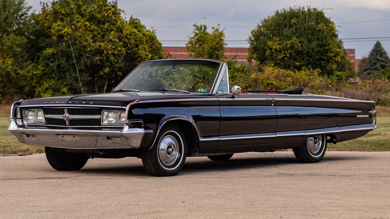 The exterior of this 1965 Chrysler 300L Convertible is presented in Black, offering a formal and commanding road presence. The color choice perfectly suits the car’s slab-sided, elegant silhouette. Inside, the cabin features a contrasting Red interior, a classic Mopar pairing that emphasizes its luxurious appointments. The color combination truly highlights the grand scale of this personal luxury machine.