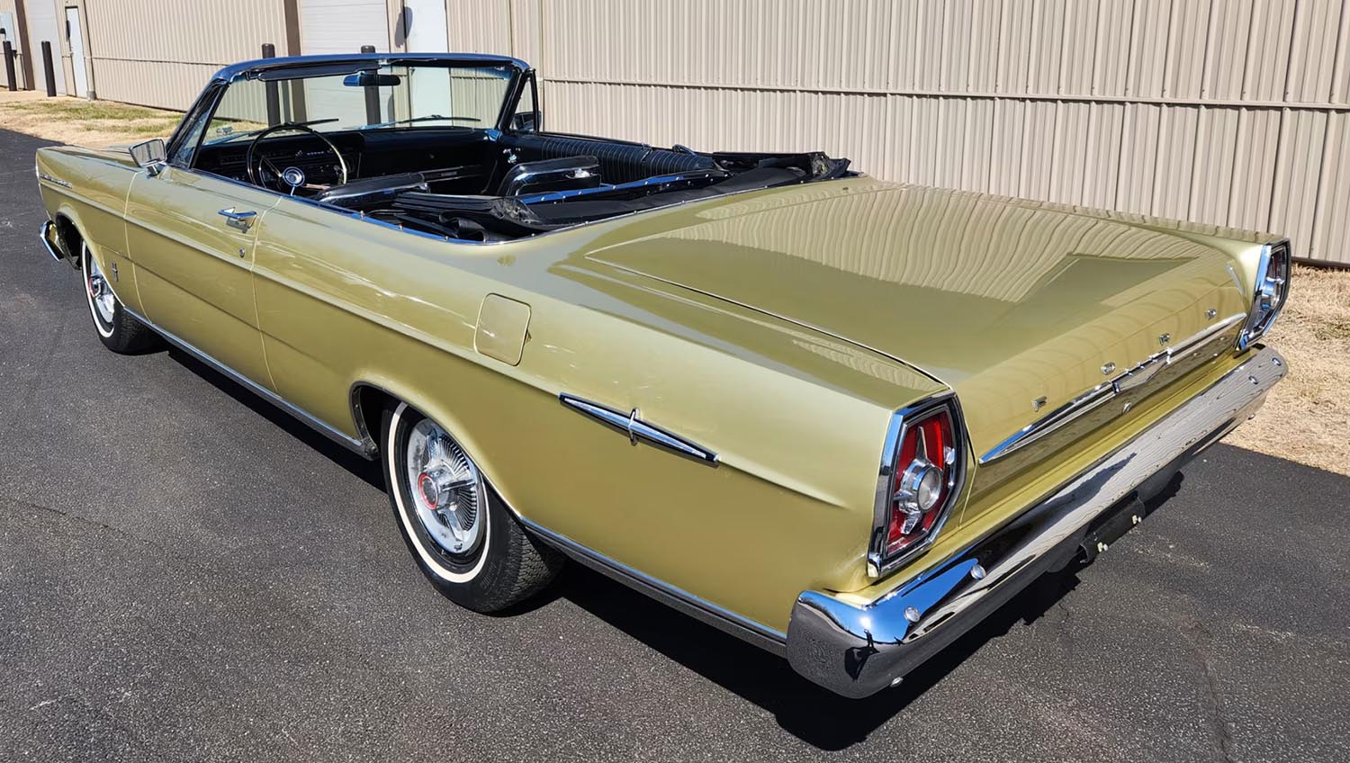 The 1965 redesign introduced a more formal, squared-off body that looks particularly elegant as a convertible. This Gold paint emphasizes the long lines of the body while pairing perfectly with the brightwork. Consequently, the car commands attention without needing overly aggressive styling cues.