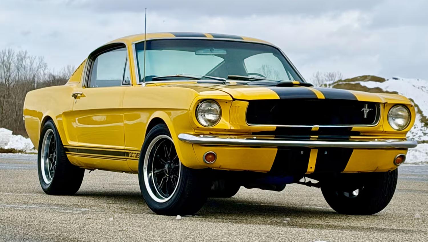 It offers a unique opportunity for buyers. This factory 2+2 model reflects a careful build. It was restored as a Shelby GT350 replica. The yellow exterior catches the eye immediately. Black stripes provide a sharp contrast. This color palette creates a very aggressive look. Side window louvers add to the aesthetic appeal. American Racing wheels complete the stance. They give the car a proper period feel.