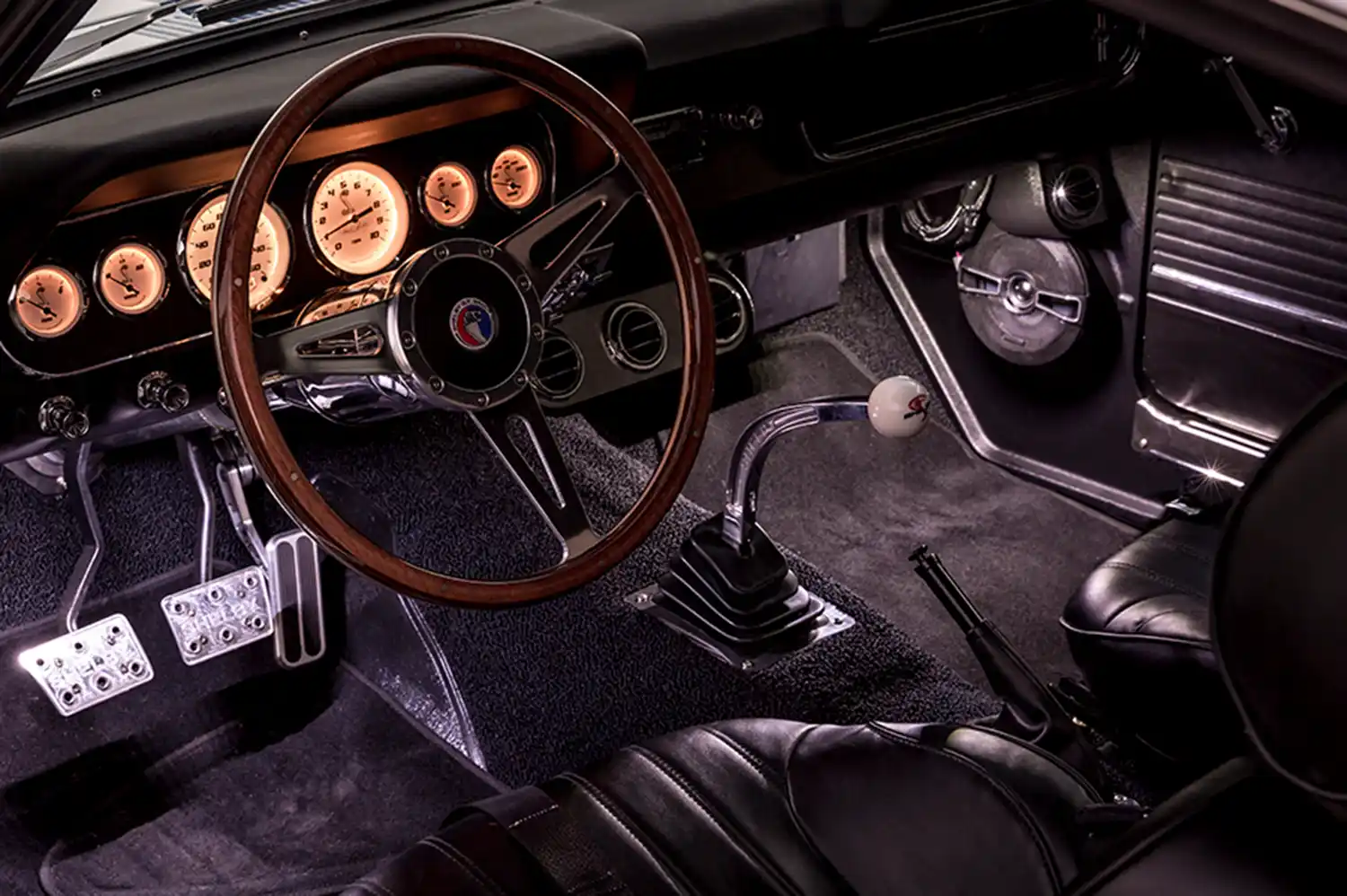 Pro Touring Track Package $25,000 (Detroit Speed suspension, 18×9.5 F & 18×12 R 3-pc forged wheels, 275/35/18 F & 335/30/18 R tires, 6-piston brakes, 14-in. rotors, mini tub)