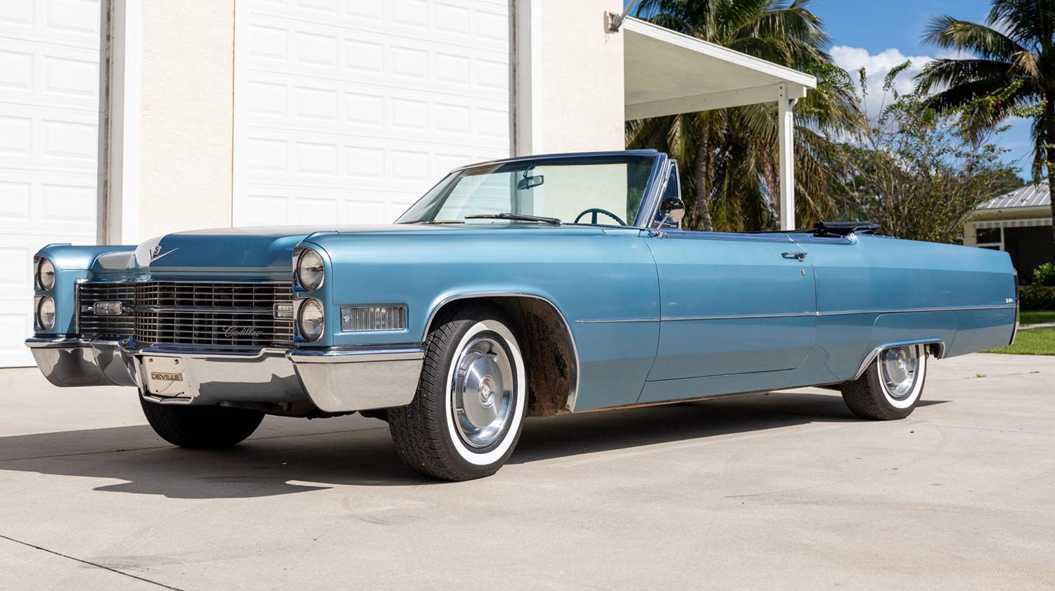 The 1966 Cadillac DeVille Convertible reflects mid-1960s American luxury in open-air form. Finished in Marlin Blue with a matching power-operated top, this example combines preserved originality with mechanical updates. Offered with a clean Florida title, it highlights Cadillac’s enduring presence.