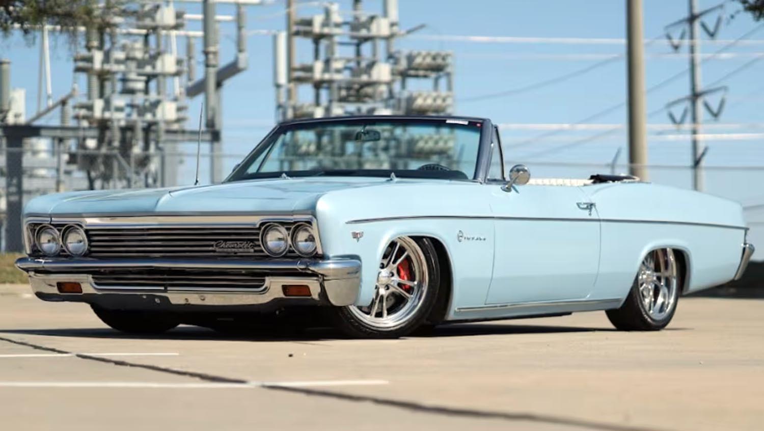 The 1966 Chevrolet Impala SS Custom represents the ultimate evolution of the full-size American convertible, successfully blending mid-sixties elegance with modern supercar performance. This specific ground-up restoration elevates the iconic drop-top silhouette through the integration of a supercharged 6.2L LT4 crate engine. Finished in striking PPG Frost Blue Metallic, the vehicle maintains its classic curb appeal while hiding a professional-grade chassis and drivetrain overhaul. Crossing the block at Houston 2026 on Saturday, April 11th, this Impala offers a rare opportunity to acquire a turn-key restomod capable of modern high-speed touring.
