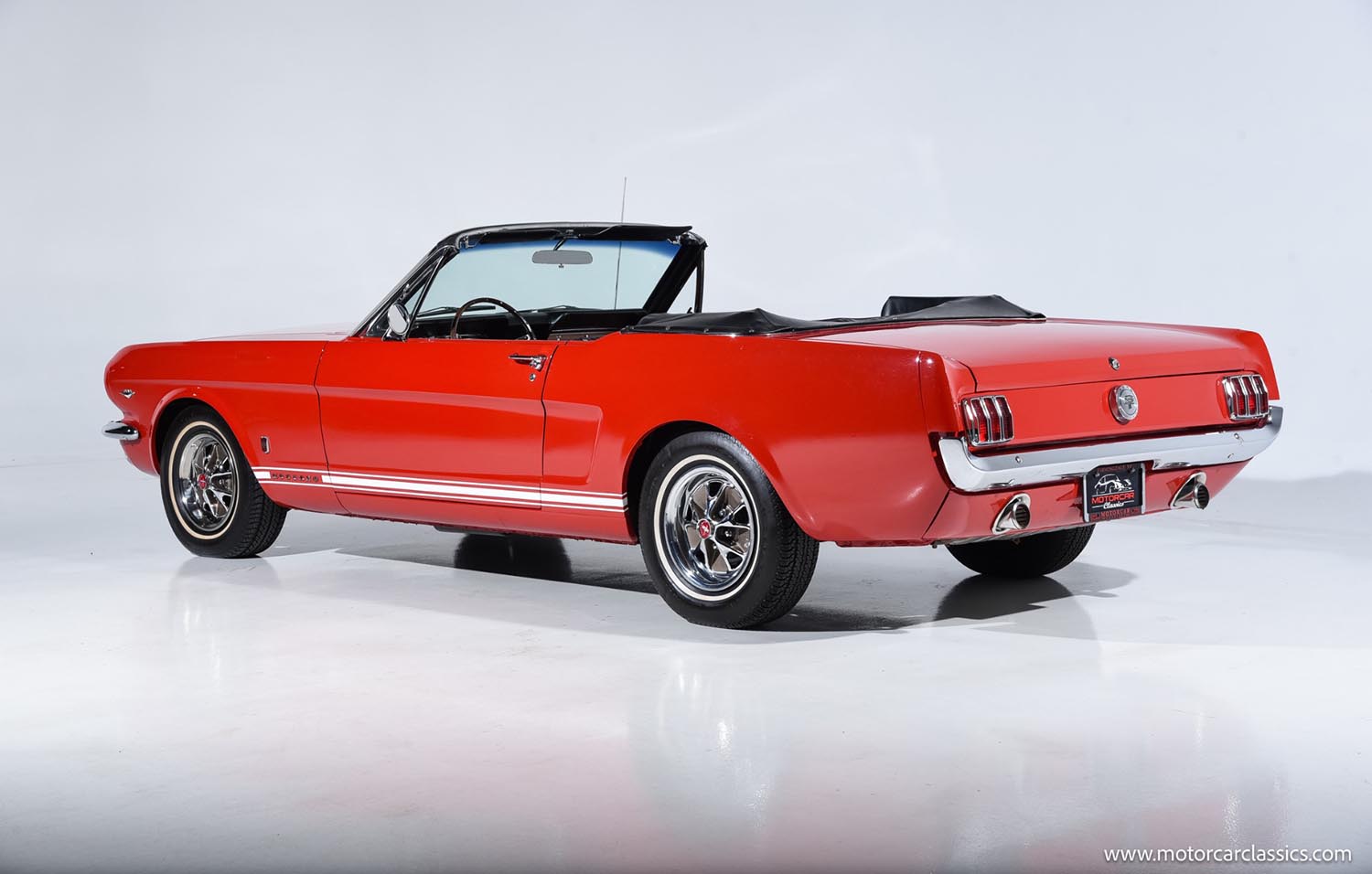The exterior finish in vibrant red showcases the timeless lines of the Mustang drop-top. This color choice strongly emphasizes the car’s sporty, fun-to-drive personality, especially with the top down. The styling of the 1966 model is often considered the cleanest of the early era. It features a simplified grille and the iconic triple taillight design. All the chrome trim appears bright and well-maintained. The convertible structure enhances the sense of freedom inherent in the Mustang design. This classic look remains instantly recognizable globally.