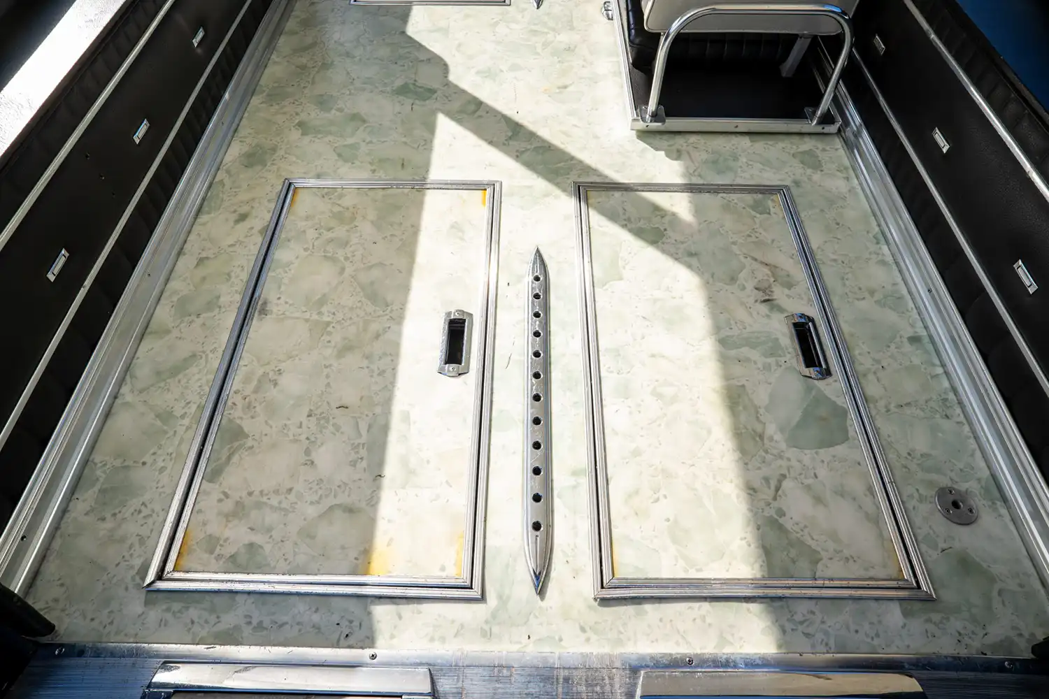 The rear compartment is thoughtfully outfitted for its intended purpose. It features reversible floor panels with integrated casket rollers for easy handling. Bright skids further aid in movement. A single seat, which conveniently folds into the floor, offers flexibility. Privacy shades provide discretion and a subdued atmosphere. This design ensures maximum utility and respectful function.