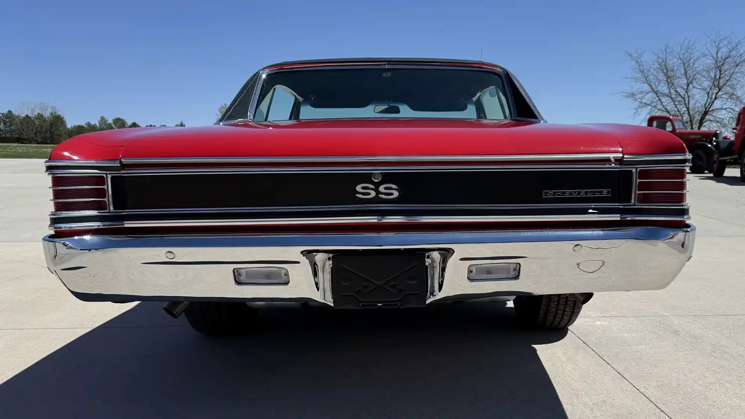 Exterior and Interior: The exterior of this 1967 Chevelle is finished in a striking Bolero Red, a color that perfectly complements its muscular stance. The car retains its original sheet metal and features new glass, new rubber and weather stripping, and new stainless trim, ensuring a fresh and well-maintained appearance. Show chrome bumpers add a touch of classic elegance. The car rides on BF Goodrich radial T/A tires mounted on U.S. Mags Rambler wheels, providing both style and performance. The black vinyl roof adds a touch of sophistication. Inside, the black interior offers a sporty and comfortable environment, featuring bucket seats with a center console and a clock. A Hurst shifter provides precise control over the 4-speed transmission.