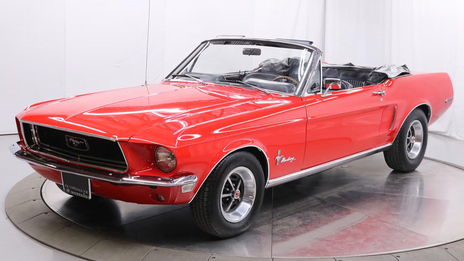 The 1968 Ford Mustang Convertible blends restoration quality with timeless design. Featuring a 302 CI V-8, 4-speed manual, and classic styling, this red convertible represents an authentic piece of American motoring history heading to auction.