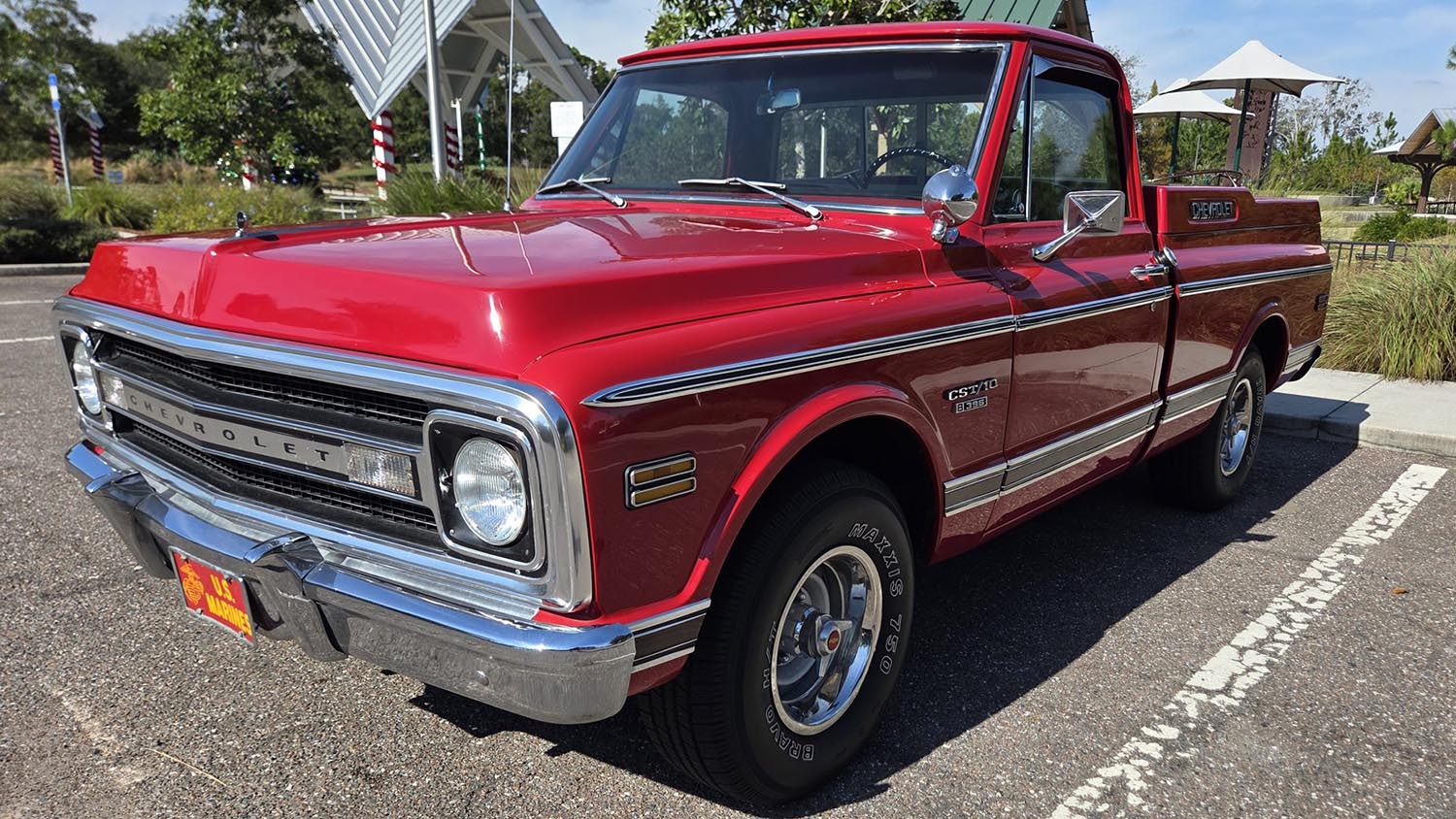 This pickup represents a functional piece of history with its big-block power. The combination of the Fleetside bed and red paint offers a bold presence. While showing minor signs of age, the truck remains a solid example of the CST trim. It is a ready-to-drive classic for any garage.