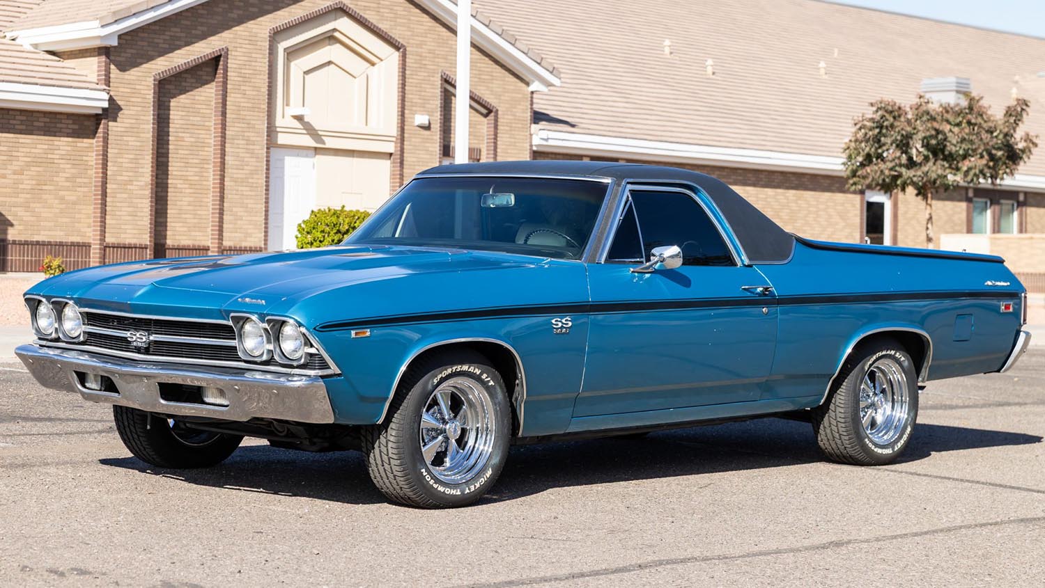 The 1969 Chevrolet El Camino SS stands as a defining bridge between the muscle car era and utility vehicle practicality. Originally a Daytona Yellow car from the Kansas City plant, this example has been transformed into a striking blue performer. It features a unique blend of vintage aesthetics and significant mechanical updates performed as recently as 2023. A color-keyed vinyl roof and a matching fiberglass tonneau cover provide a sleek, unified look to the classic body lines. The car utilizes factory body panels, which have been enhanced with polyurethane body mounts for improved structural rigidity on the road. For the enthusiast seeking a versatile classic, this El Camino offers the aggressive presence of a Chevelle with the added utility of a pickup bed. It remains a timeless choice for collectors who appreciate the diverse history of Chevrolet’s high-performance light trucks.
