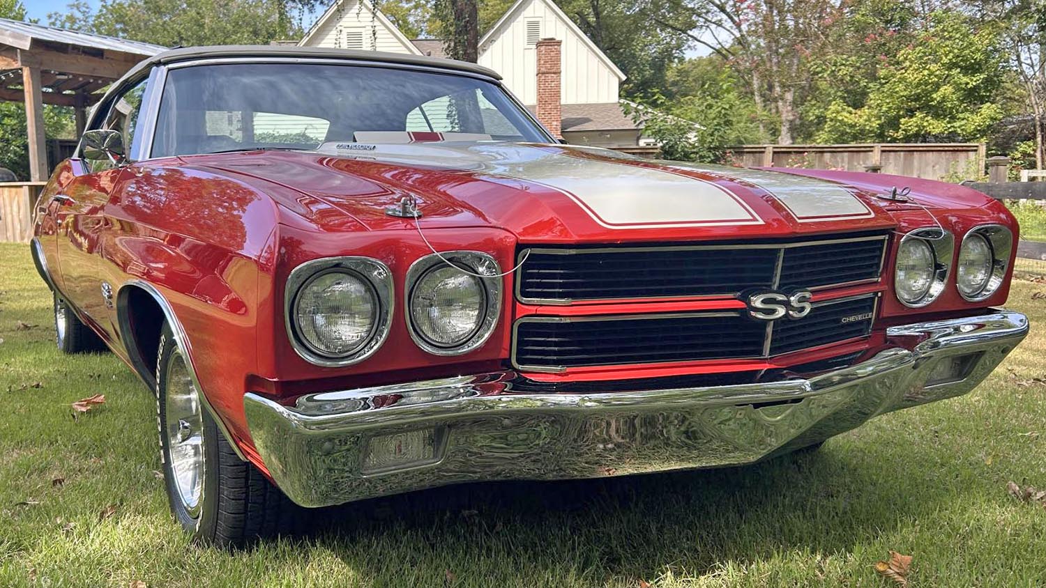 The 1970 Chevrolet Chevelle Malibu Convertible 454 stands as a refurbished muscle car with period-correct details. Its Cranberry Red finish, replacement big-block V8, and Muncie four-speed transmission combine to create a striking example offered with a clean Tennessee title.