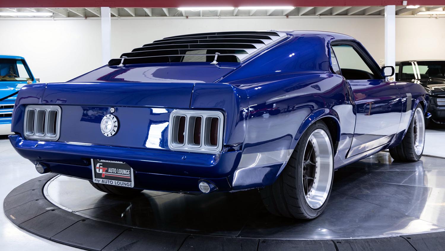The 1970 Ford Mustang SportsRoof serves as the ultimate canvas for the “Hell Pony” custom build. This car represents a total transformation of the classic fastback silhouette into a modern performance titan. It wears a striking metallic blue finish accented by silver stripes and a matching hood scoop. Shaved doors and a smoothed decklid create a streamlined appearance that emphasizes its aggressive muscle car roots. Beyond the aesthetics, this machine was engineered to deliver a visceral driving experience on par with contemporary supercars. It integrates high-end components from the steering wheel to the rear axle for total mechanical harmony. Consequently, it remains a standout example of how to modernize a legend without losing its soul. It is a vehicle designed for those who demand both heritage and raw power.