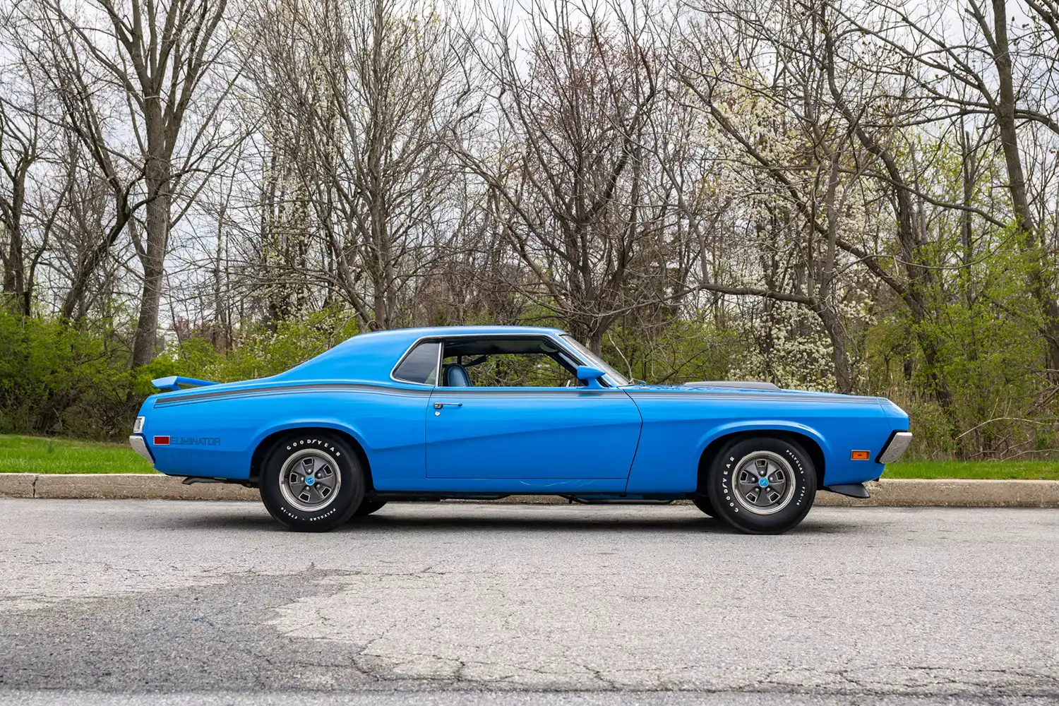 Meticulously Preserved and Restored: This ultra-rare 1970 Mercury Cougar Eliminator has been treated with the utmost care throughout its life. It underwent a previous restoration by renowned Cougar specialist KTL Restorations, ensuring its presentation to like-original standards. Subsequently, it was entrusted to Marcus Anghel in Scottsdale, Arizona, a specialist known for his expertise in locating and installing NOS (New Old Stock) components, further enhancing its authenticity. Importantly, this Eliminator retains its original drivetrain and sheet metal, preserving its historical integrity. The striking Competition Blue exterior, a classic muscle car hue, is perfectly complemented by a blue interior, creating a cohesive and period-correct aesthetic.