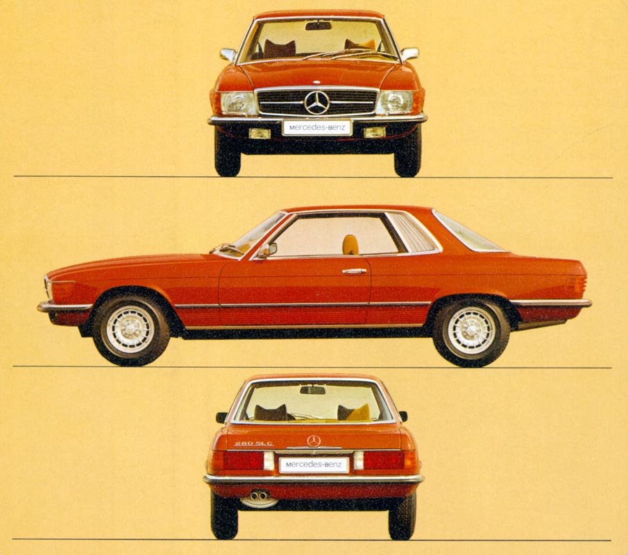 The coupé weighed around 50 kilograms more than the corresponding roadster. Both variants’ driving performance was almost identical as a result of the SLC’s drag coefficient of 0.423 (1973) being lower than the SL’s value with a hard top (drag coefficient = 0.489).