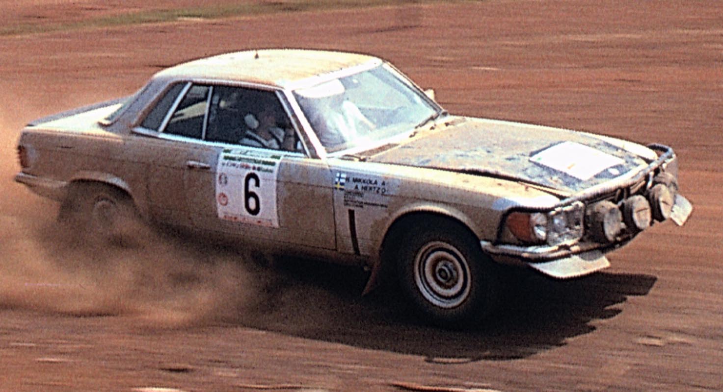 The other Mercedes-Benz vehicles followed in second, third, fourth, sixth and ninth place. At the East African Safari – an event deeply steeped in tradition – Hannu Mikkola and his 450 SLC 5.0 led the field for a long time, ultimately finishing as runners-up. At the end of the year, four SLC Coupés completed a one-two-three-four victory at the Ivory Coast Rally with Mikkola claiming the title.