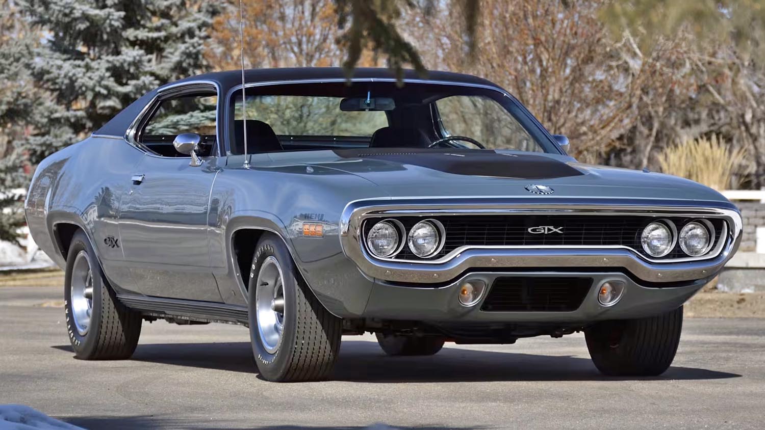 The exterior of this GTX is finished in a subtle yet menacing Gunmetal Gray, a hue that perfectly complements the car’s muscular proportions. Following a comprehensive rotisserie restoration, the sheet metal is laser-straight and finished to a higher standard than when it left the factory. The functional Air Grabber hood serves as a visual warning of the power beneath, while the chrome loop bumper integrates seamlessly into the body lines. Period-correct Rallye wheels and Goodyear Polyglas tires ensure the car maintains its authentic 1971 stance.
