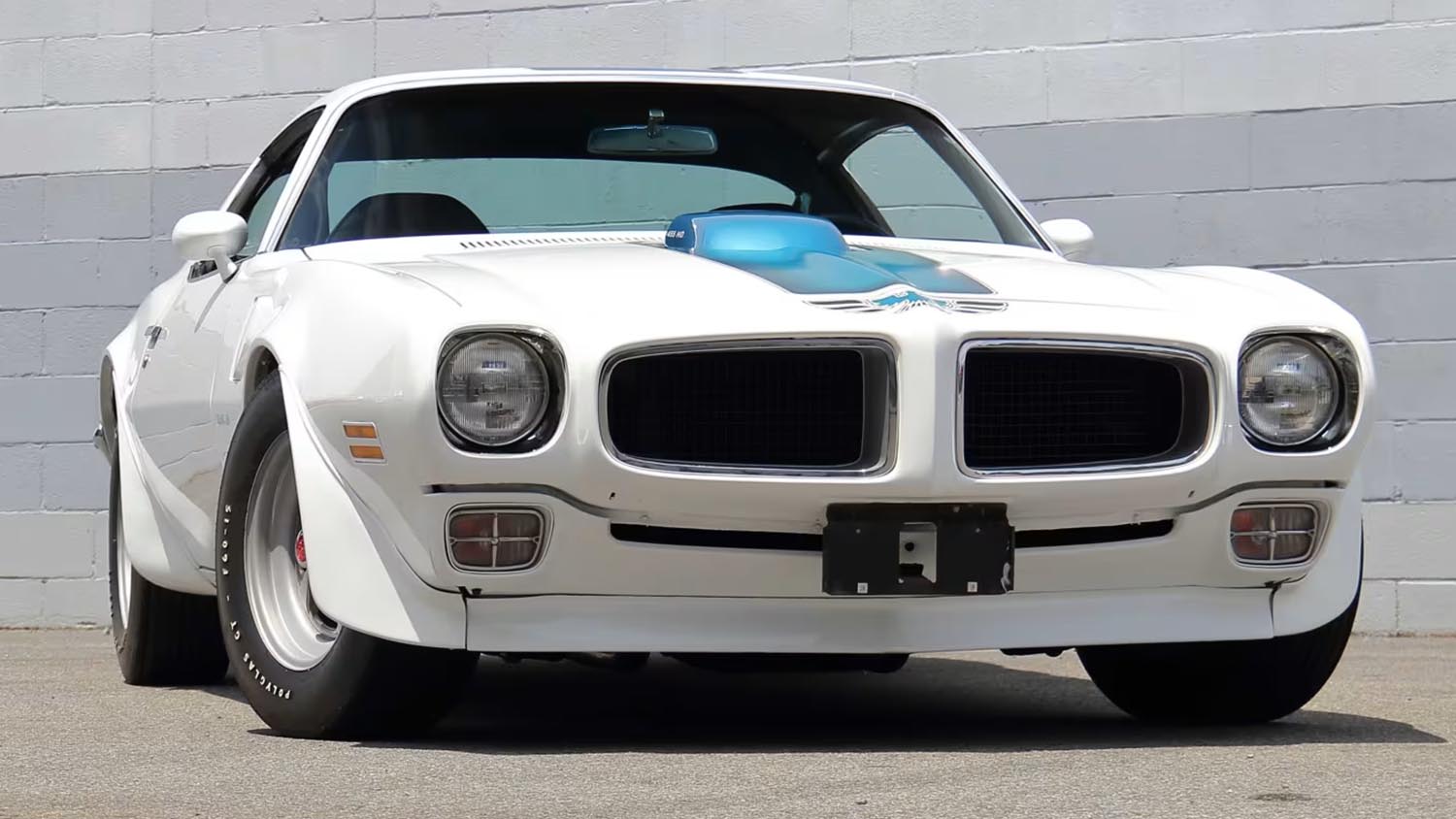 The exterior of this 1971 Pontiac Trans Am is finished in classic Cameo White. This iconic shade is complemented by the signature blue center stripe and accents. These graphics were designed to emphasize the car’s low-slung and wide profile. The rotisserie restoration ensured that the undercarriage is just as clean as the top side. Every panel gap and trim piece reflects a commitment to factory-correct appearance. This color scheme remains the most recognizable look for early second-gen models.