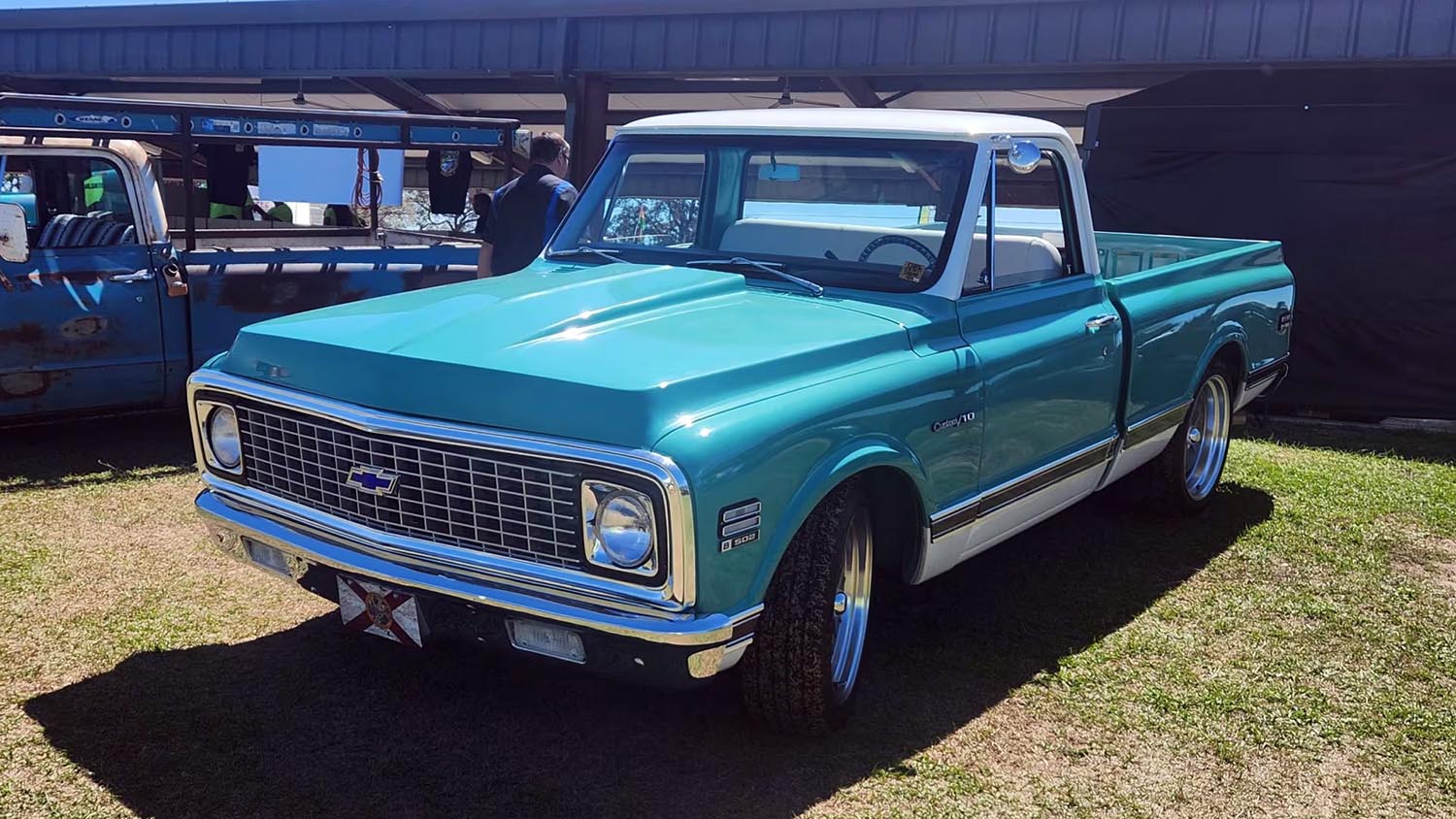 The 1972 Chevrolet C10 Pickup arrives at Kissimmee 2026 with a bold mix of vintage styling and modern upgrades. Finished in teal and white, it carries a fuel-injected 502 V-8 under the hood. The focus keyphrase underscores its place in Chevrolet’s truck heritage.