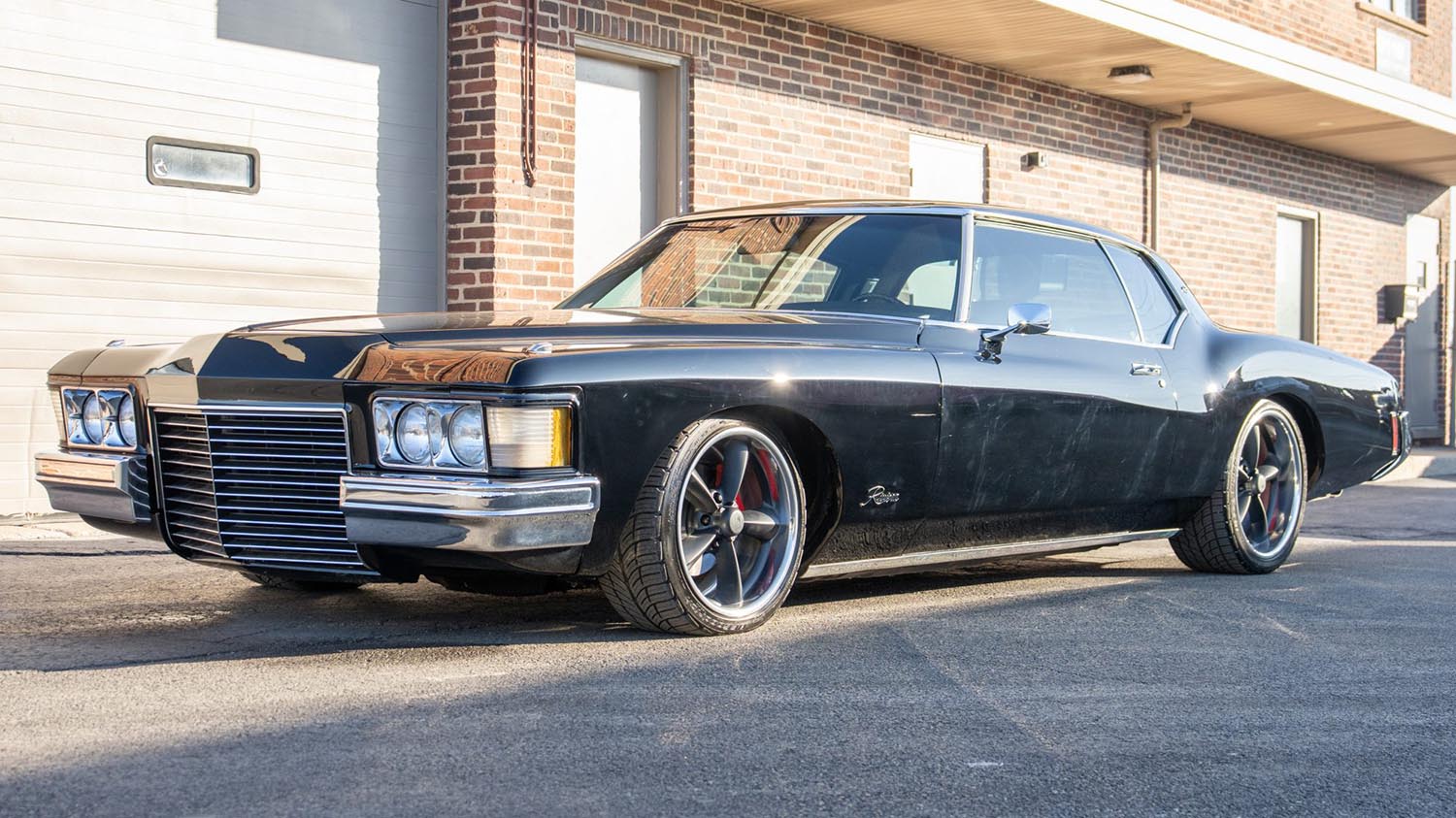 The 1973 Buick Riviera stands as the final, dramatic chapter of the third-generation “boat-tail” design, a silhouette that remains one of the most polarizing and celebrated in American automotive history. Penned under Bill Mitchell and Jerry Hirshberg, the Riviera’s sharp rear tapers and sweeping lines created a visual language unlike anything else on the road. This Regal Black example has been elevated from its factory roots into a high-end restomod, combining the massive displacement of a traditional big-block with the stance and stopping power of a modern performance machine. Now offered with a freshly replaced rear window and significant mechanical upgrades, it represents a definitive take on the ultimate luxury muscle cruiser.