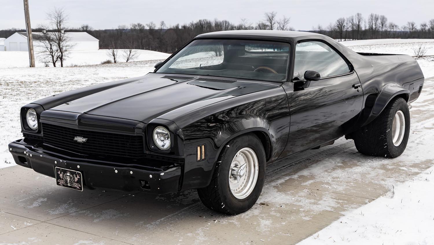 The 1973 Chevrolet El Camino represents a unique era where utility met the unapologetic muscle of the seventies. This specific Fremont-built example has shed its factory roots in favor of a much more aggressive, street-oriented identity. Finished in deep black, the car underwent extensive modifications before the current seller acquired it in 2025. It successfully blends the classic pickup-car silhouette with modern high-performance hardware designed for the drag strip or the street. Widened fenders now dominate the profile to house a massive tire package that hints at its true potential. This build offers a raw, mechanical connection that newer trucks simply cannot provide. It is a purpose-built machine for those who appreciate significant presence and power.