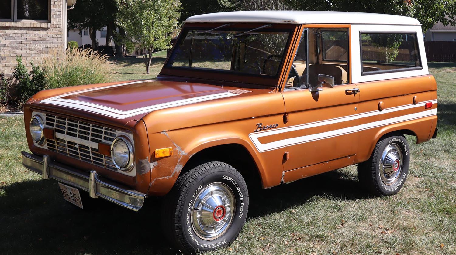 The 1974 Ford Bronco 302 in metallic orange combines storage history, mechanical refurbishment, and period equipment. With a 302ci V8, automatic transmission, and limited-slip differentials, it represents a capable and authentic classic heading to auction.