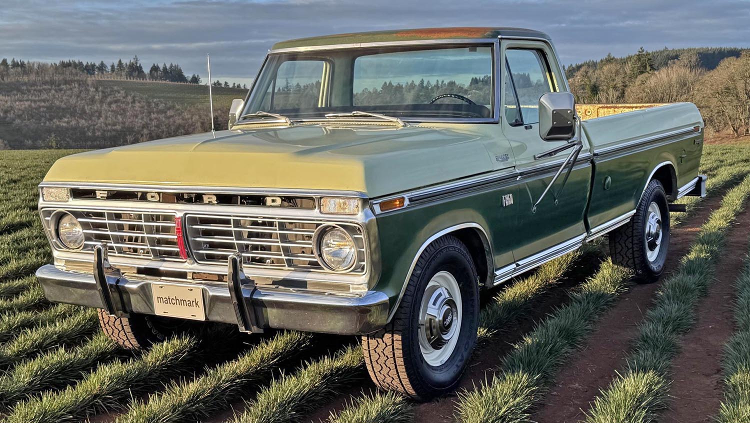 The appeal of a vintage high-boy era pickup lies in its rugged simplicity and honest work ethic. This 1974 Ford F-250 Ranger XLT stands as a prime example of that durable Ford legacy. Finished in a distinctive two-tone Ivy Glow and Pastel Lime, it represents the pinnacle of 1970s truck styling. A recent 2025 mechanical and cosmetic refresh ensures this pickup remains functional for modern use. It currently resides in Oregon, offered at no reserve with a clean title and a Deluxe Marti report.