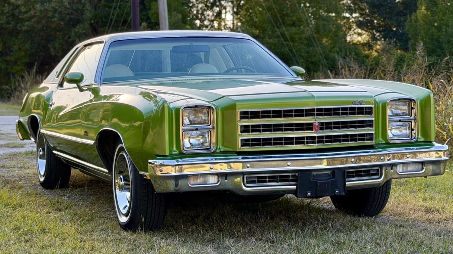 The third-generation Chevrolet Monte Carlo, introduced in 1973, perfectly captured the era’s focus on personal luxury. This 1976 Chevrolet Monte Carlo Coupe embodies that unique design ethos with its long hood, sweeping fender lines, and formal roofline. Finished in the striking Lime Metallic color, this example shows a verified low mileage of 51,000. Recently acquired by the selling dealer, it features a highly contrasted white and green interior. This car serves as a rolling time capsule of mid-1970s American comfort and style.