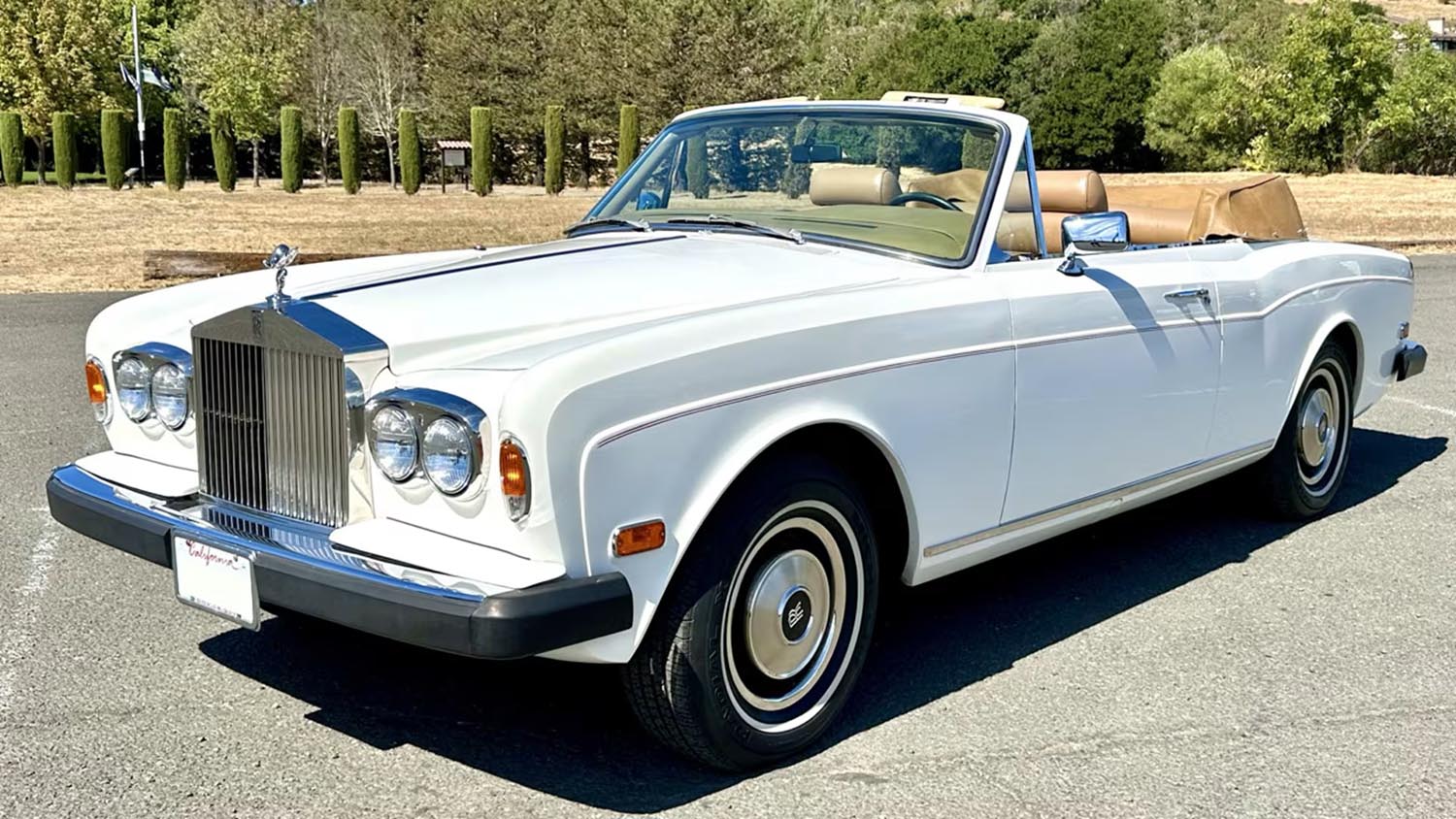 The exterior of this 1976 Rolls-Royce Corniche Drophead Coupe is finished in its original Acrylic White paint. This shade emphasizes the car’s massive proportions and elegant, hand-sculpted body lines that Mulliner Park Ward perfected. Every piece of brightwork remains polished to a high luster, reflecting the car’s sheltered life in California garages. The convertible top operates smoothly, allowing the driver to transition from a quiet cabin to open-air motoring. Such aesthetic purity is a hallmark of the Rolls-Royce brand and its enduring design language.