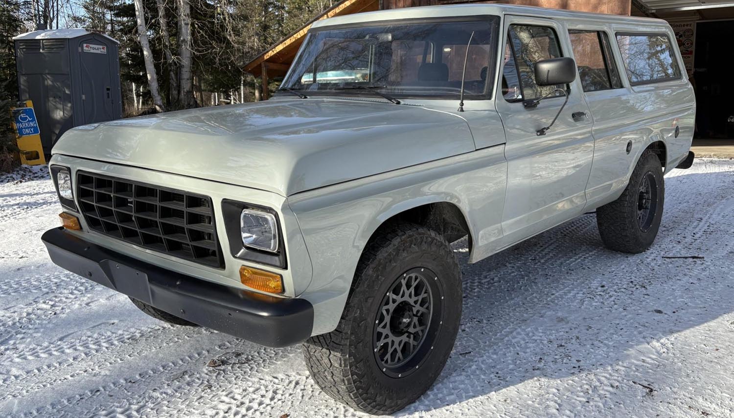 Collectors will appreciate the Cactus Gray paint, which gives the truck a contemporary look while respecting its vintage roots. Black-finished bumpers and a matching grille provide a sharp contrast to the lighter body panels. The seller also installed LED headlights to ensure better visibility during nighttime excursions. A split tailgate adds practical value, making it easier to load gear for weekend trips or car shows.