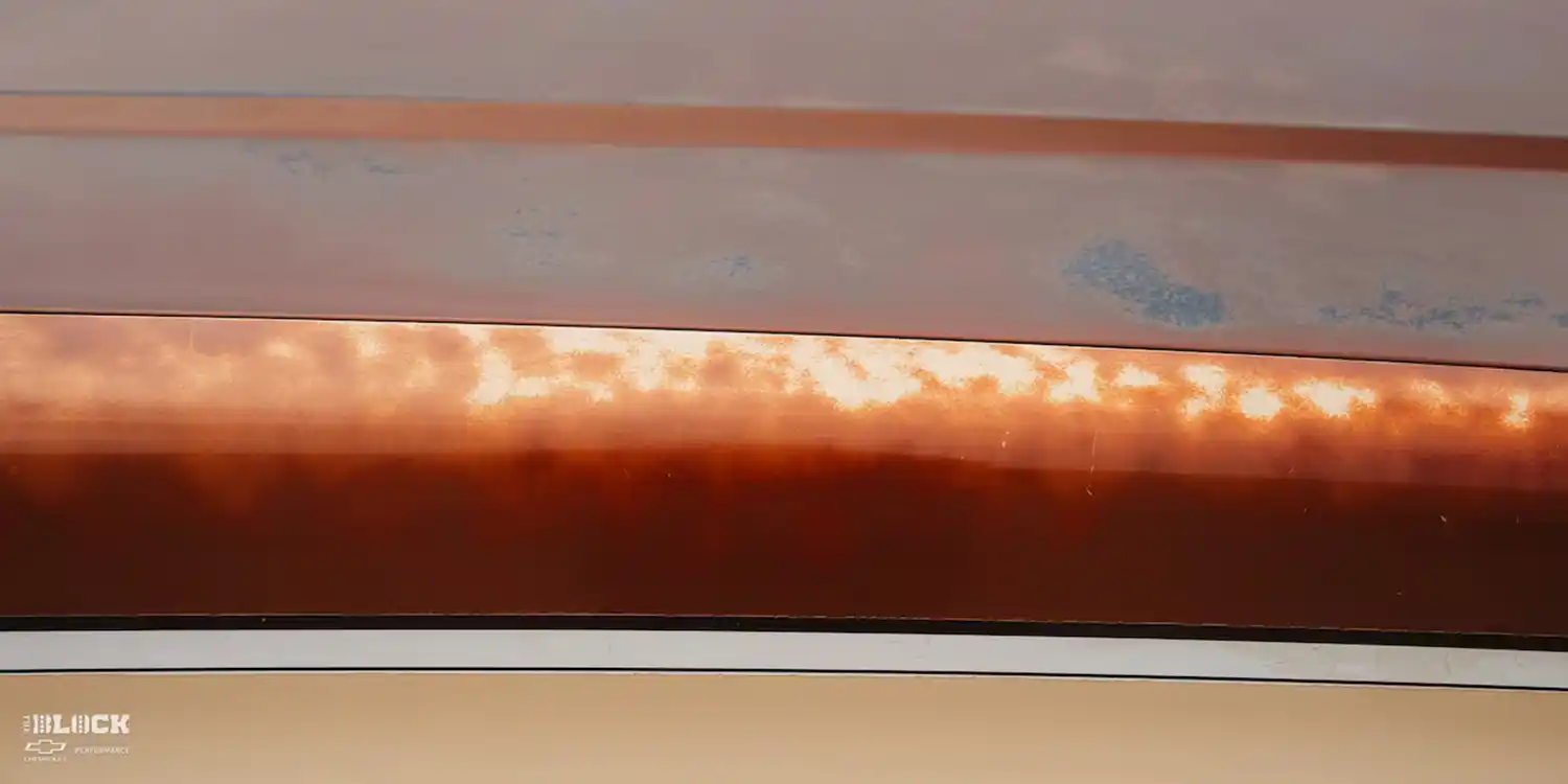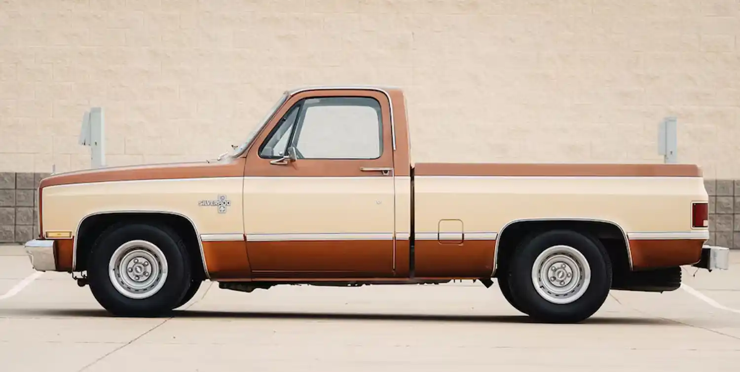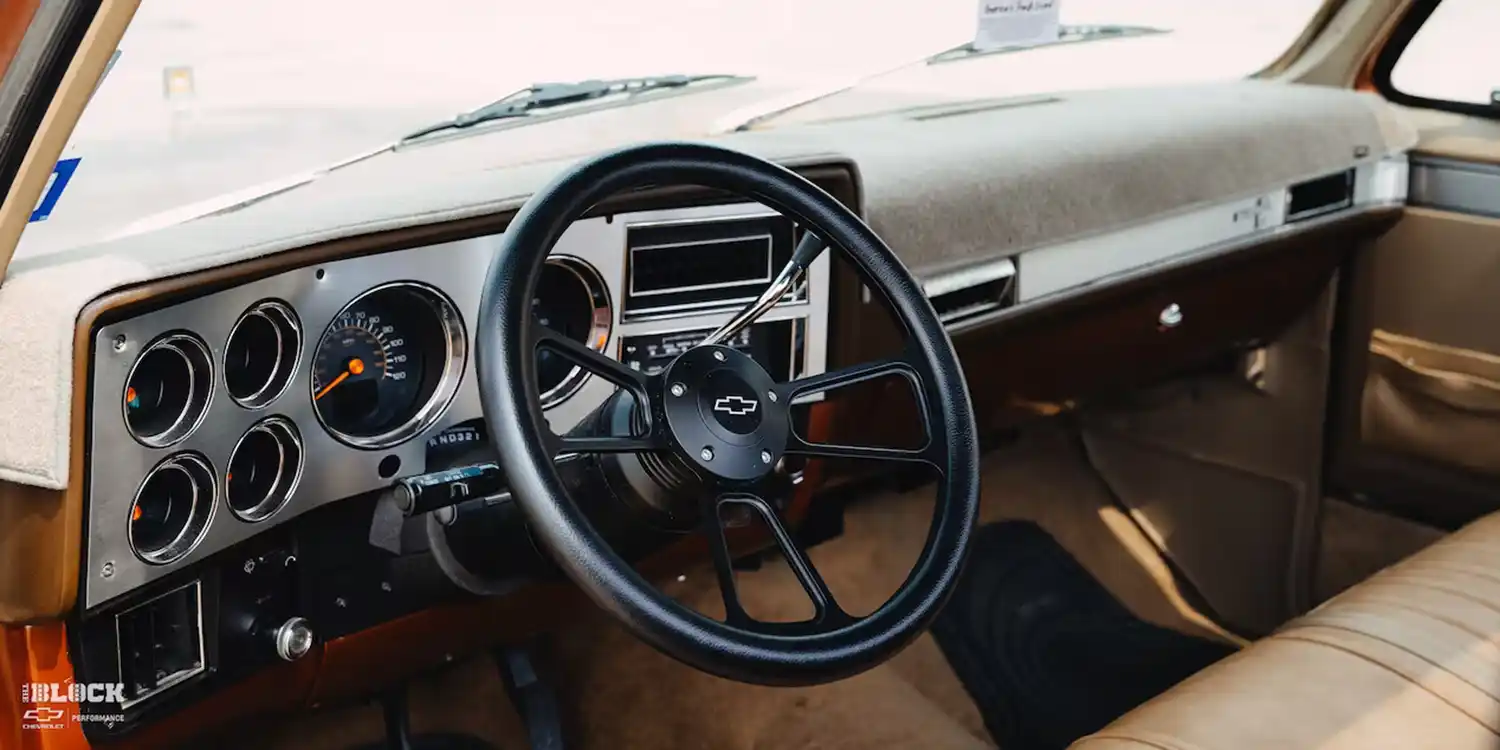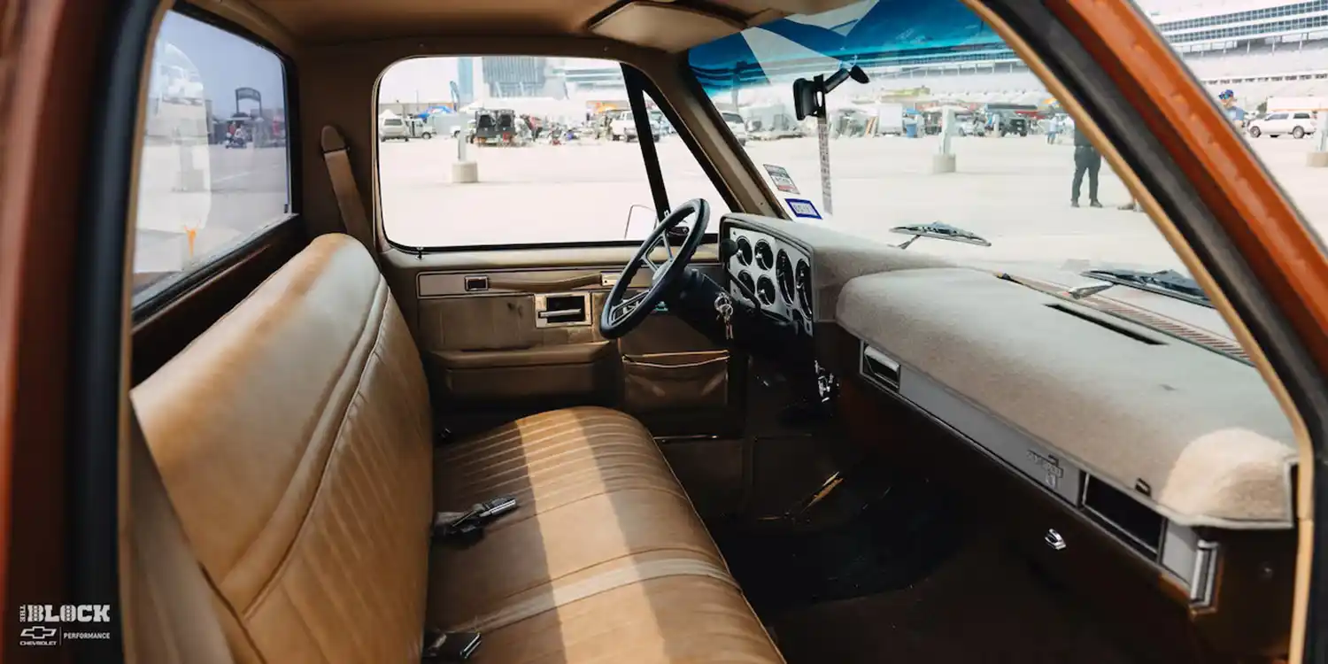 Outside of the drivetrain, the bronze-and-tan truck is nearly entirely the same as when it rolled off the General Motors assembly line, down to the paint. Lewis only fixed one rust spot behind the driver’s-side rear tire, otherwise, the exterior is all original.