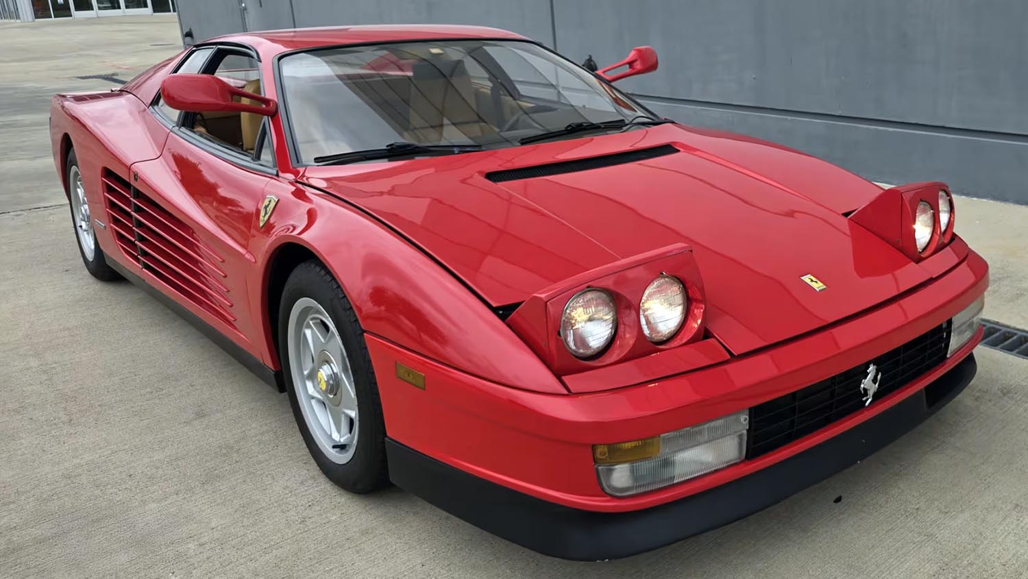 This specific Testarossa showcases the quad exhaust tips and silver five-spoke alloy wheels that enthusiasts search for in a classic. The pop-up headlights function perfectly, preserving the sleek silhouette of the front hood when they are not in use. It is clear this vehicle has been treated with the respect a flagship Ferrari deserves throughout its life. Maintenance on these complex machines is vital, and this example appears ready for the spirited driving it was built for. It serves as a rare opportunity to acquire a legendary silhouette.