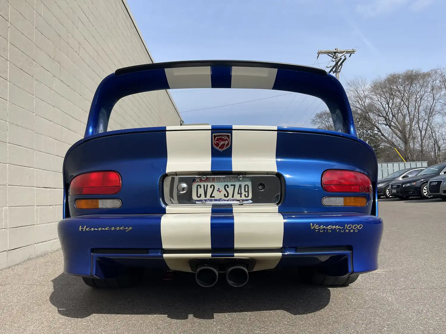 The Viper Unleashed: This 1996 Dodge Viper GTS represents a significant step beyond the already formidable factory performance, reportedly having undergone a transformation at the hands of the renowned Hennessey Performance. Originally registered in California before relocating to Texas around 2008, this Viper GTS is believed to have been fitted with Hennessey’s coveted Venom 1000 package. This comprehensive modification is said to include aerodynamic enhancements and a twin-turbocharger system for the Viper’s overhead-valve V10 engine, purportedly boosting its output to an astounding 1000 horsepower. Finished in the iconic Viper GTS Blue with bold white center stripes and featuring a black and blue leather interior, this Viper is equipped with a Tremec T-56 six-speed manual transmission and a limited-slip differential, promising an incredibly engaging and high-performance driving experience. Showing 29,000 miles and recently acquired by the selling dealer in 2025, this Venom-enhanced Viper GTS is now offered in Minnesota with a clean Texas title and an accident-free Carfax report.