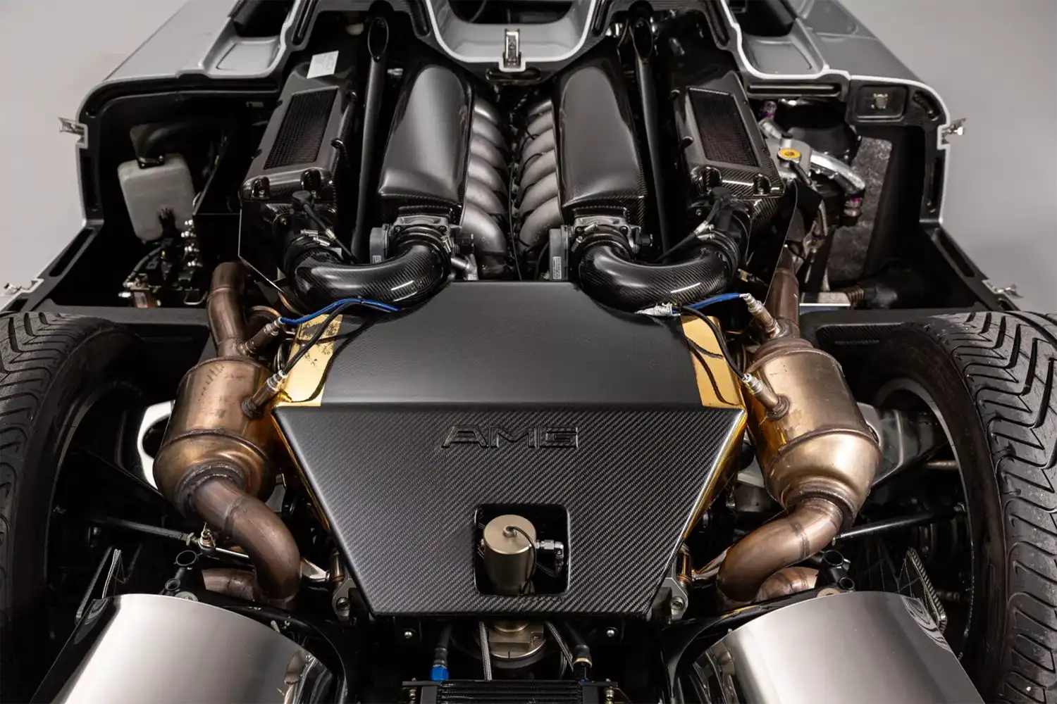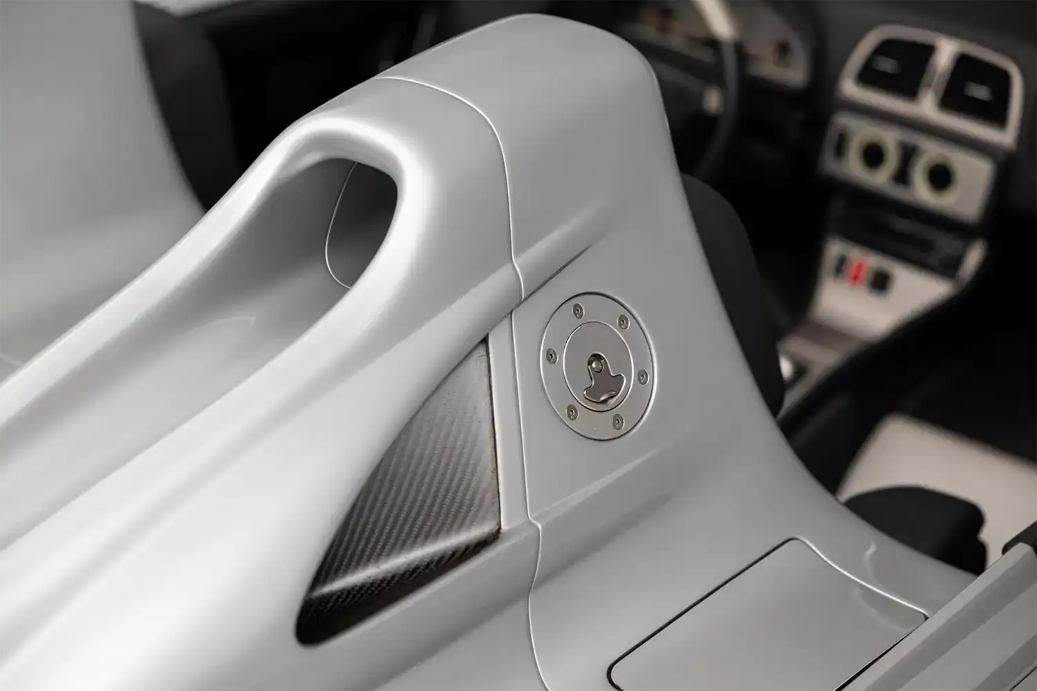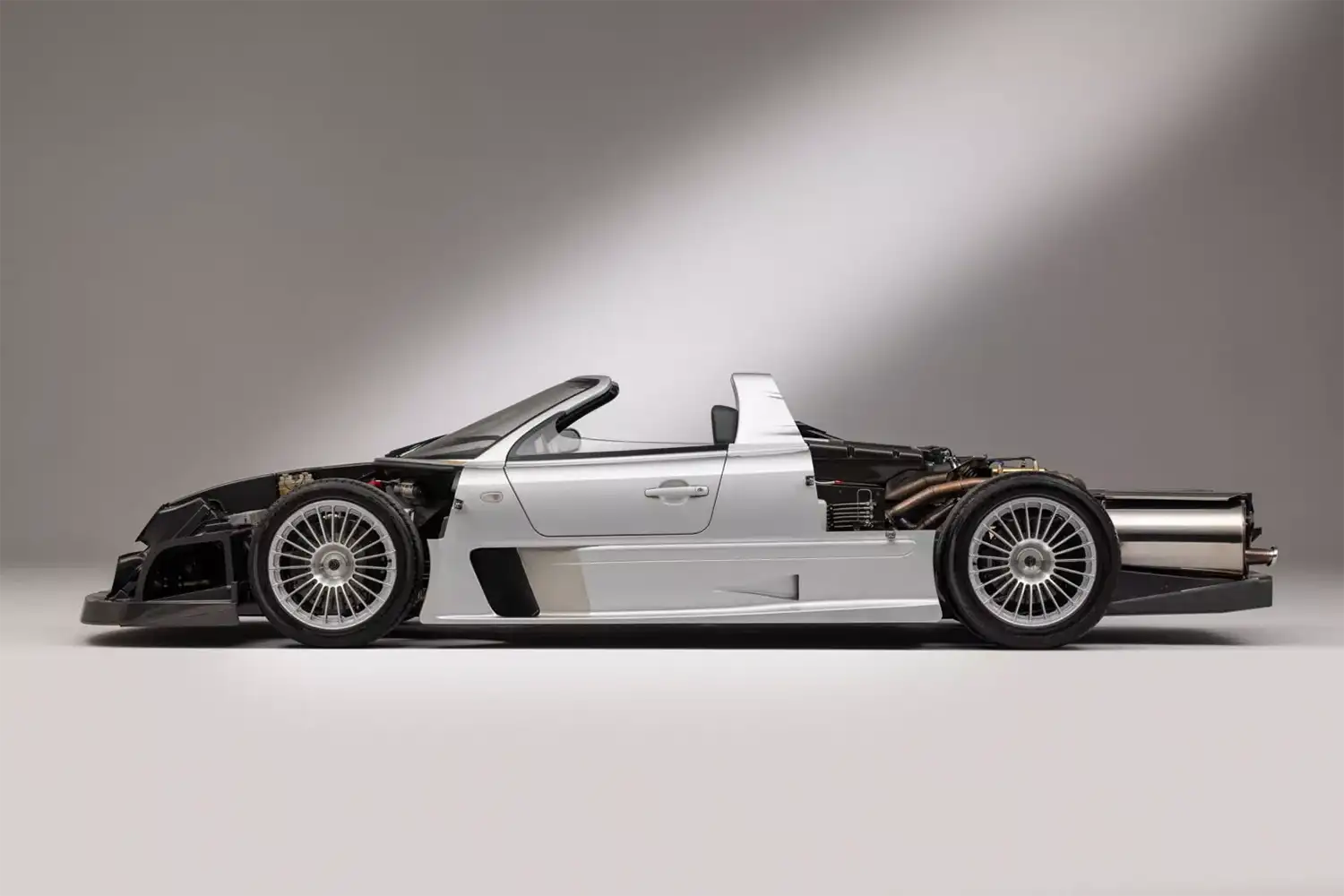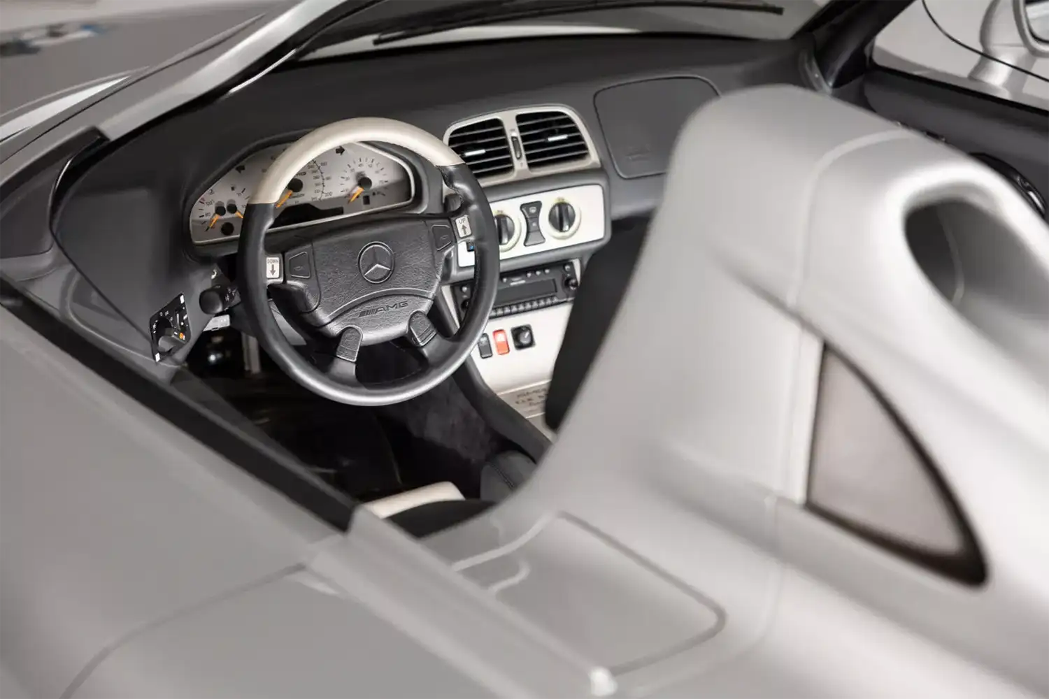 A single roadster version was initially built during the coupe’s production run, and the result proved to be so enticing that five more examples were eventually greenlighted for production on spare CLK GTR chassis after coupe production had concluded. HWA again received a contract for the roadster build, which required a number of modifications from the original design. With the removal of the roof and its massive single air intake, the engine intakes were repositioned to the sides. Further revisions included door-mounted mirrors, integrated roll-hoops behind the seats, and a new front grille and rear wing.