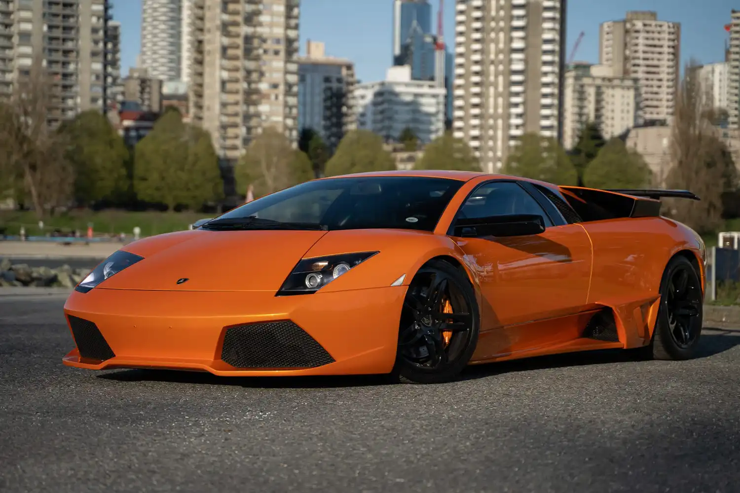 This striking 2003 Lamborghini Murciélago is a unique left-hand-drive coupe originally destined for a market outside the United States. Spending its early years in Japan, it was imported to Canada in December 2024. Notably, it is reported that only around 985 first-generation Murciélago coupes were produced with the highly desirable gated manual transmission, making this example particularly special. Showing just 38,000 kilometers (approximately 24,000 miles) on the odometer, this Murciélago is finished in vibrant Arancio Atlas over a Nero Perseus leather interior accented with orange stitching. Power comes from a potent 6.2-liter V12 engine. The car features LP-style lower bodywork and upgraded taillights, an aftermarket exhaust system, a convenient front-axle lift system, 18-inch Hermera wheels, an aftermarket carbon-fiber rear wing, air conditioning, and a modern aftermarket Pioneer stereo equipped with a back-up camera. Recently acquired by the selling dealer, this Murciélago is now offered in Canada with a clean British Columbia registration.