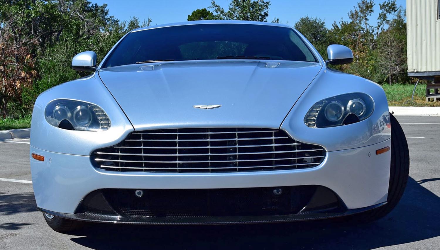 The exterior character of the Vantage is defined by its compact, muscular proportions and the optional Magnum Silver Mesh Pack that adds a technical edge to its appearance. This example is further enhanced with the carbon-fiber exterior trim package, featuring lightweight accents on both the front and rear valances. Functional elements like the xenon headlights and clear LED taillights provide a modern lighting signature, while the integrated rear spoiler maintains aerodynamic stability at speed. Despite a minor ding on the hood and some typical aging on the headlight covers, the Lightning Silver paint continues to catch the light with an exceptional metallic depth.