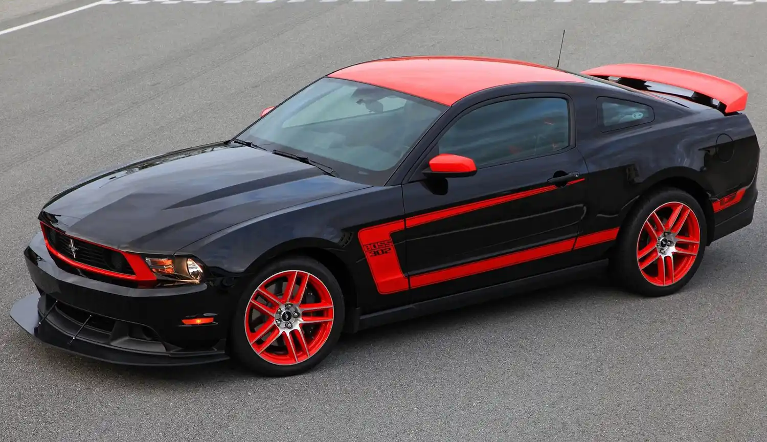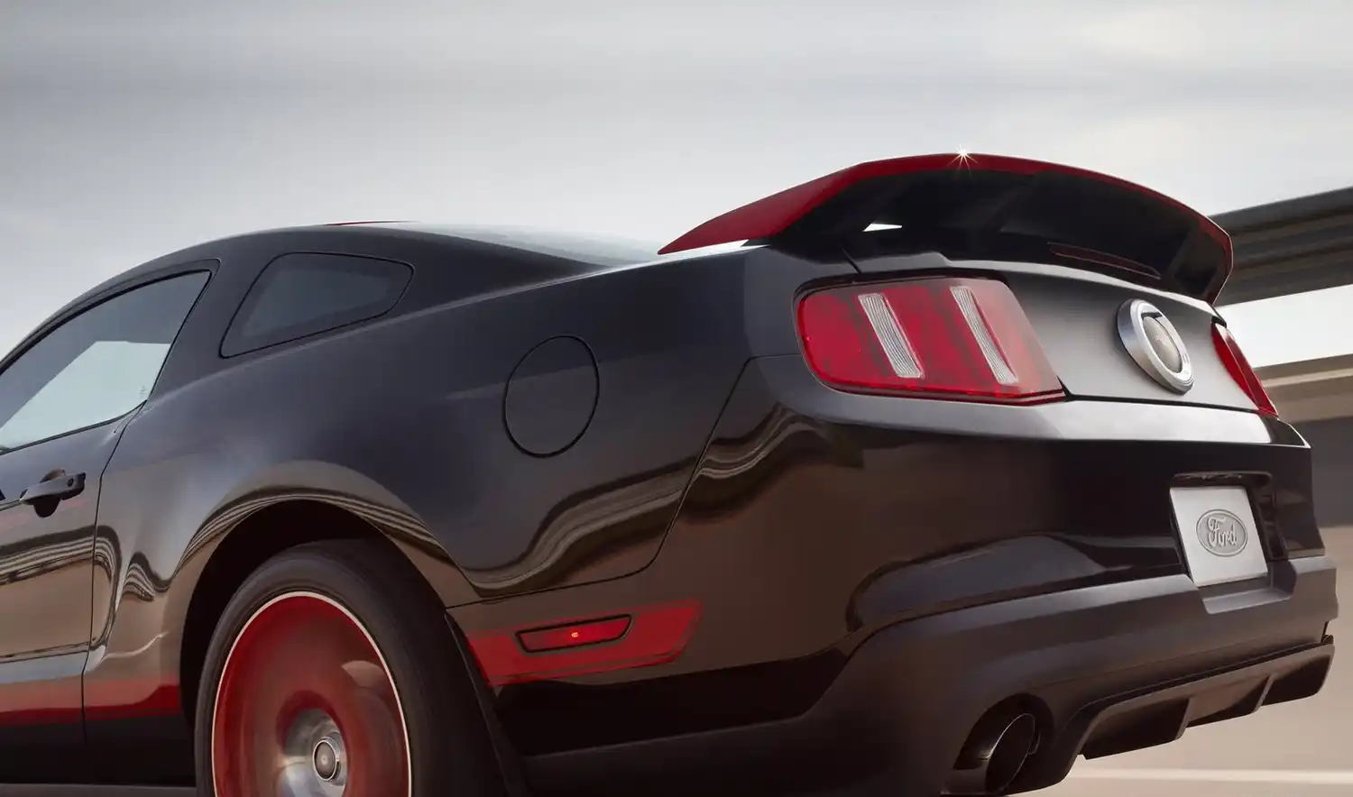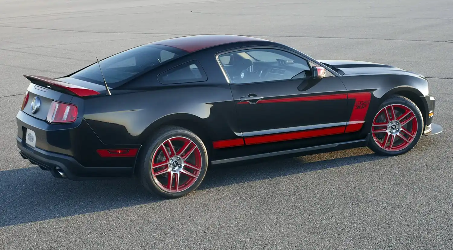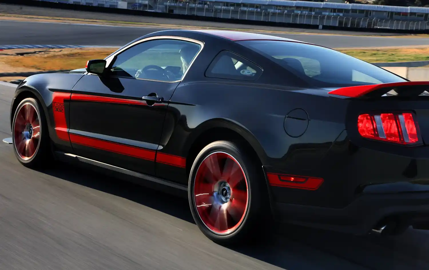 As a race car should, Ford Mustang Boss 302 models with the Laguna Seca package look like nothing else on the road. A bright red C-stripe offsets either Black or Ingot Silver paint, and is complemented by a red roof panel. Red also sets off the front grille, mirror caps and rear pedestal spoiler, while Laguna Seca rear badging and unique two-tone red and silver wheels complete the transformation.